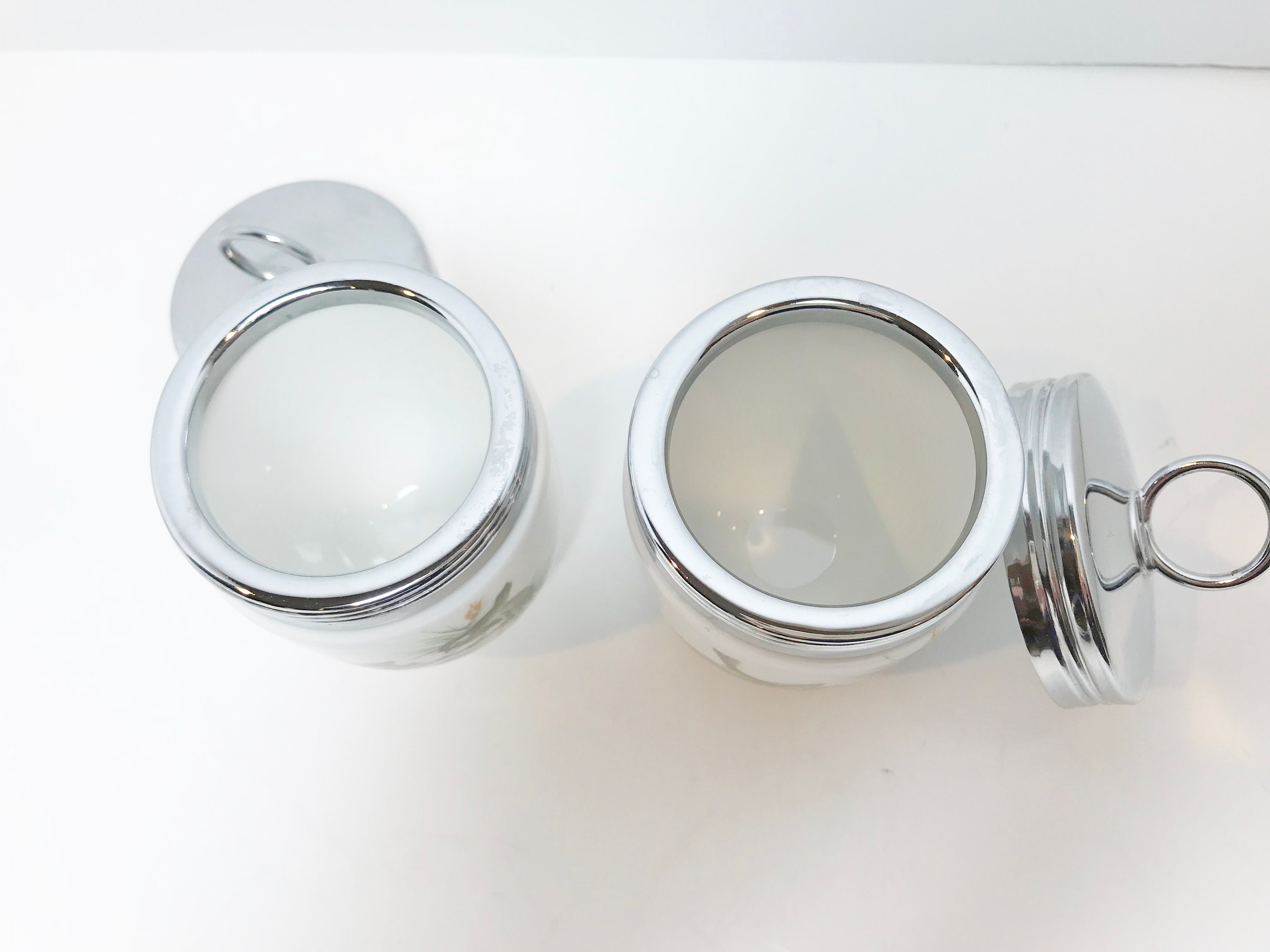 These pieces are in excellent condition. There is light scratching where the top screws onto the base. The ceramic is excellent. You may buy with confidence.