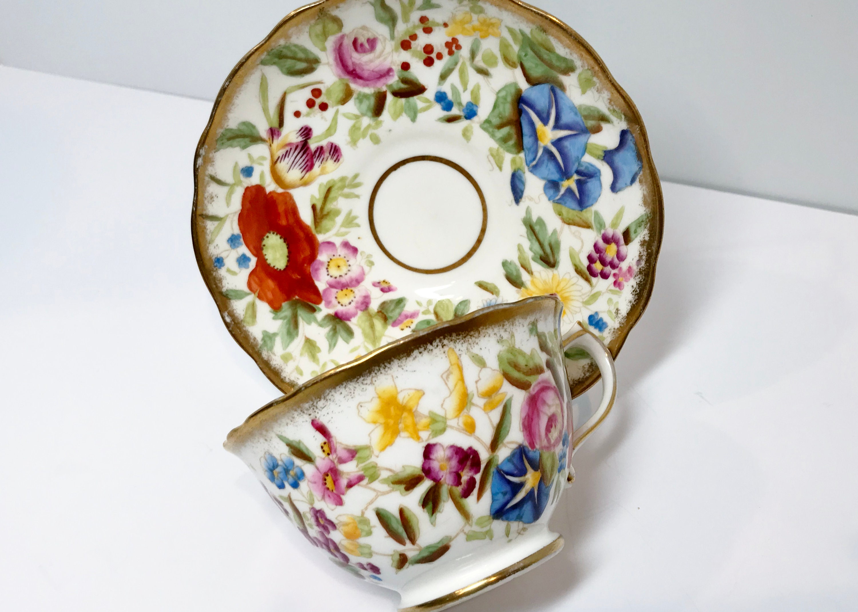 This romantic Hammersley tea cup and saucer creates a sense of luxury.