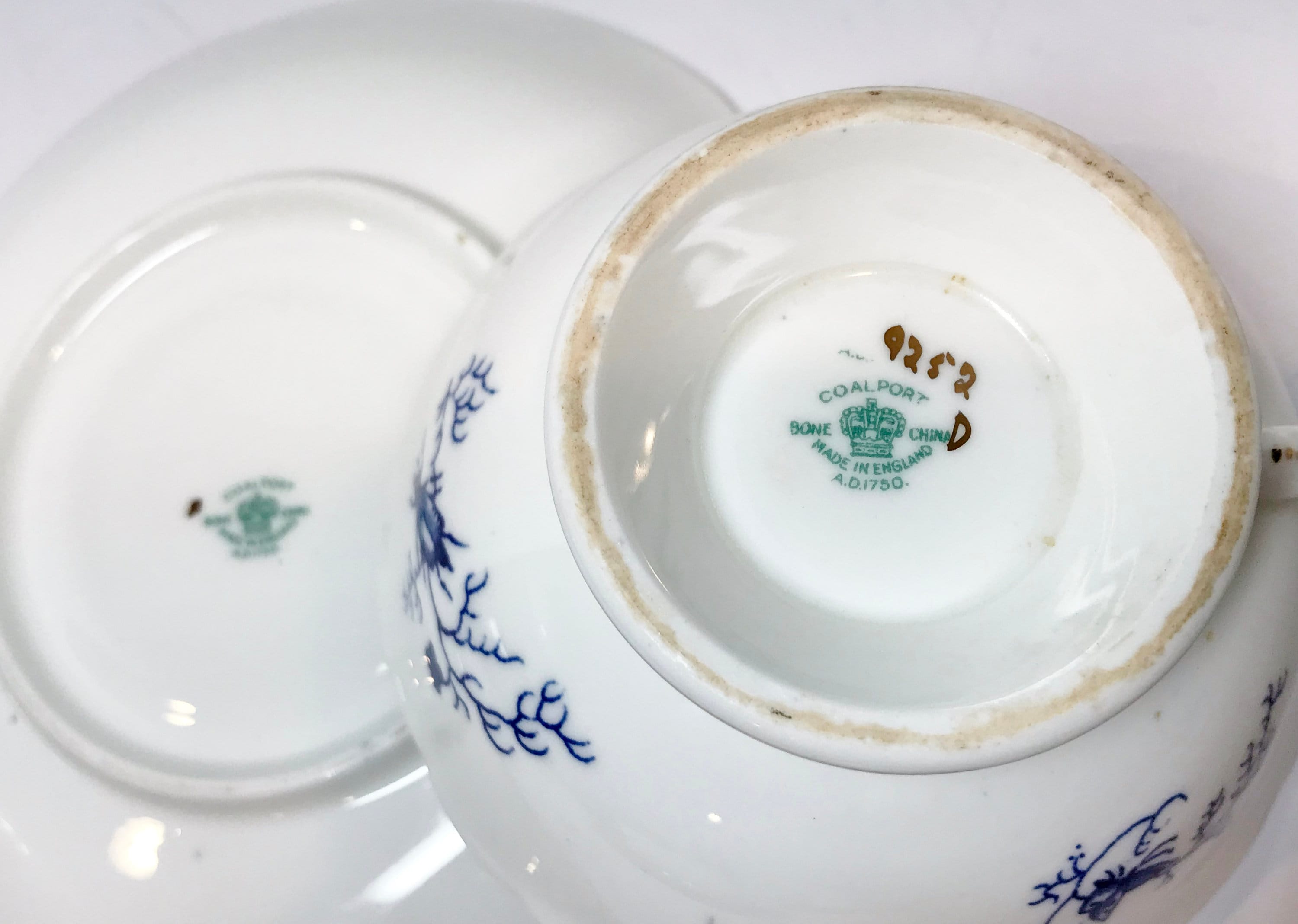 Coalport Bone China of England manufactured this gorgeous teacup and saucer. It creates a luxurious touch at every tea.
