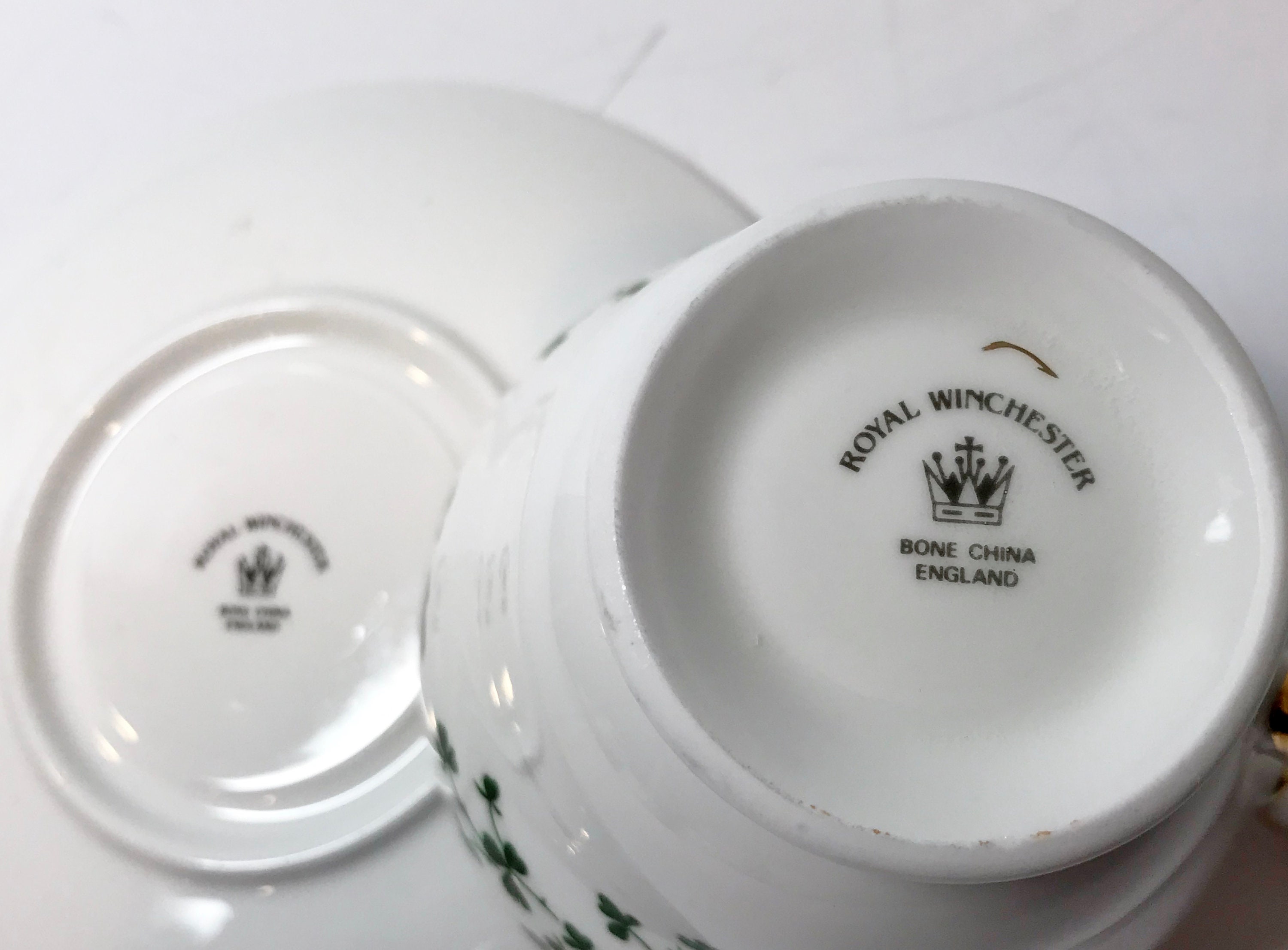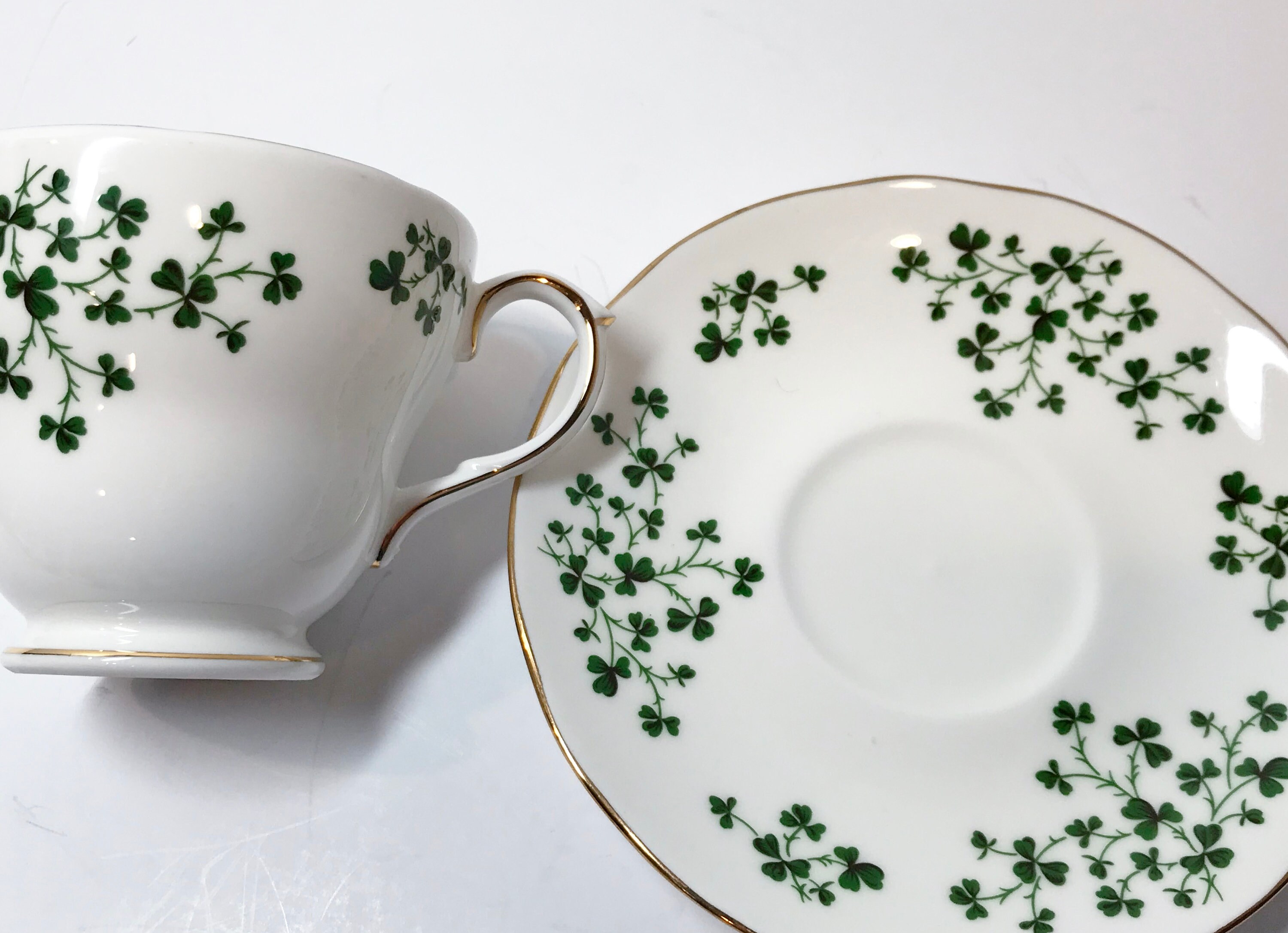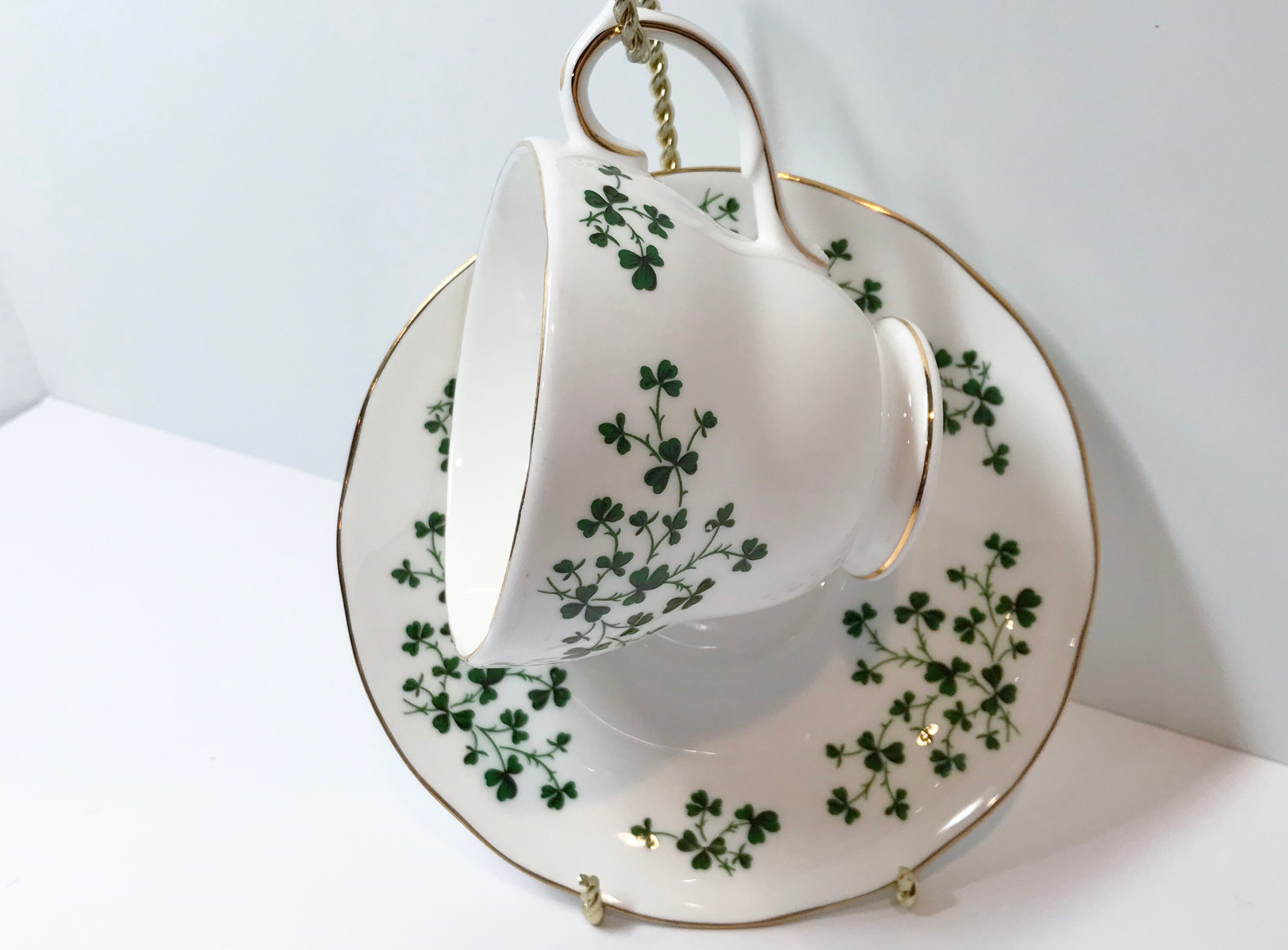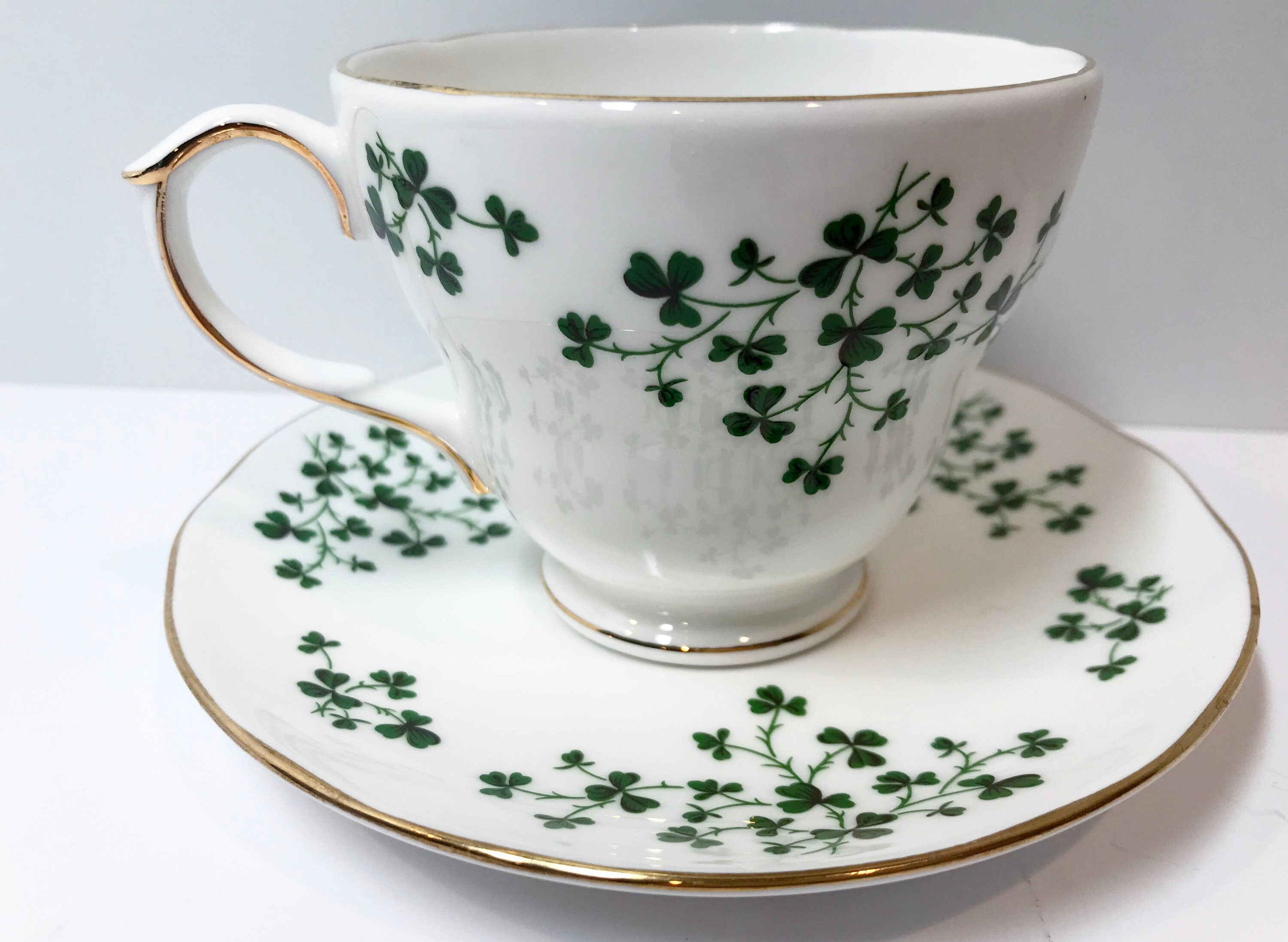 This shamrock bone china teacup and saucer is by Winchester Bone China of England.