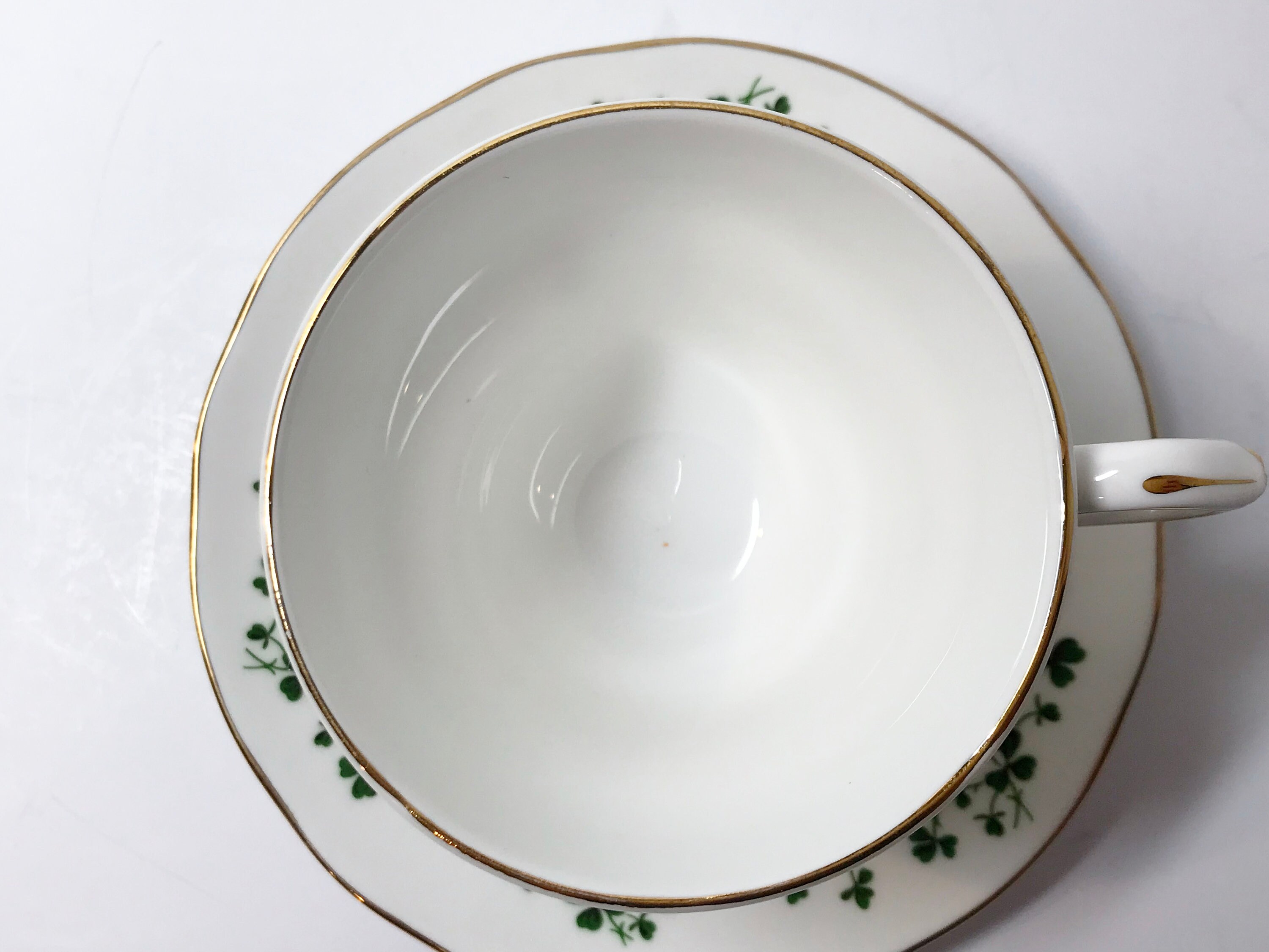 This shamrock teacup and saucer is in excellent condition. There are no chips, cracks or crazing. We do not sell damaged items. You may buy with confidence.