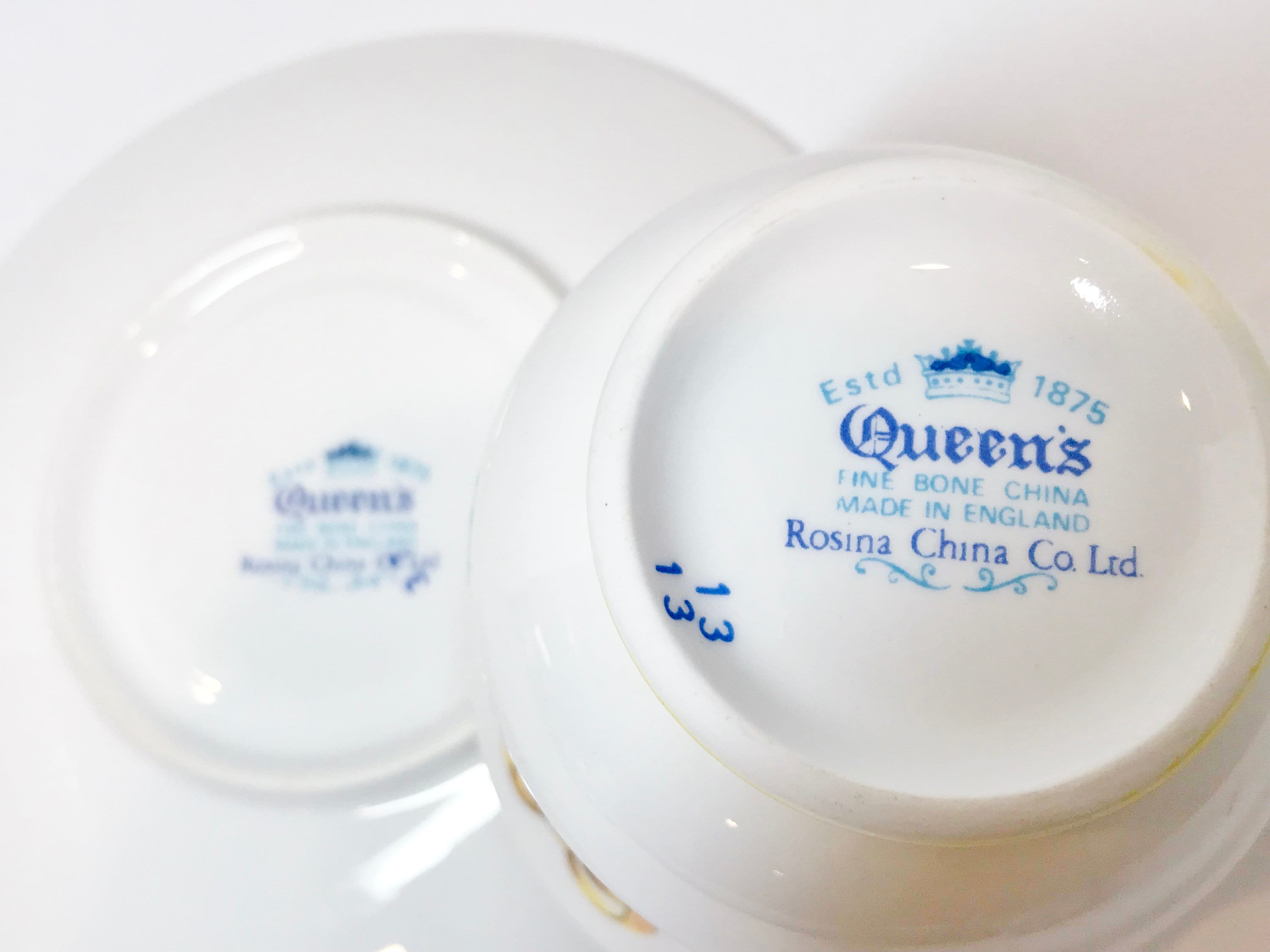 Queens was the product of George Warrilow and Sons Ltd of Queens Pottery in Longton, England. It later became Rosina China.