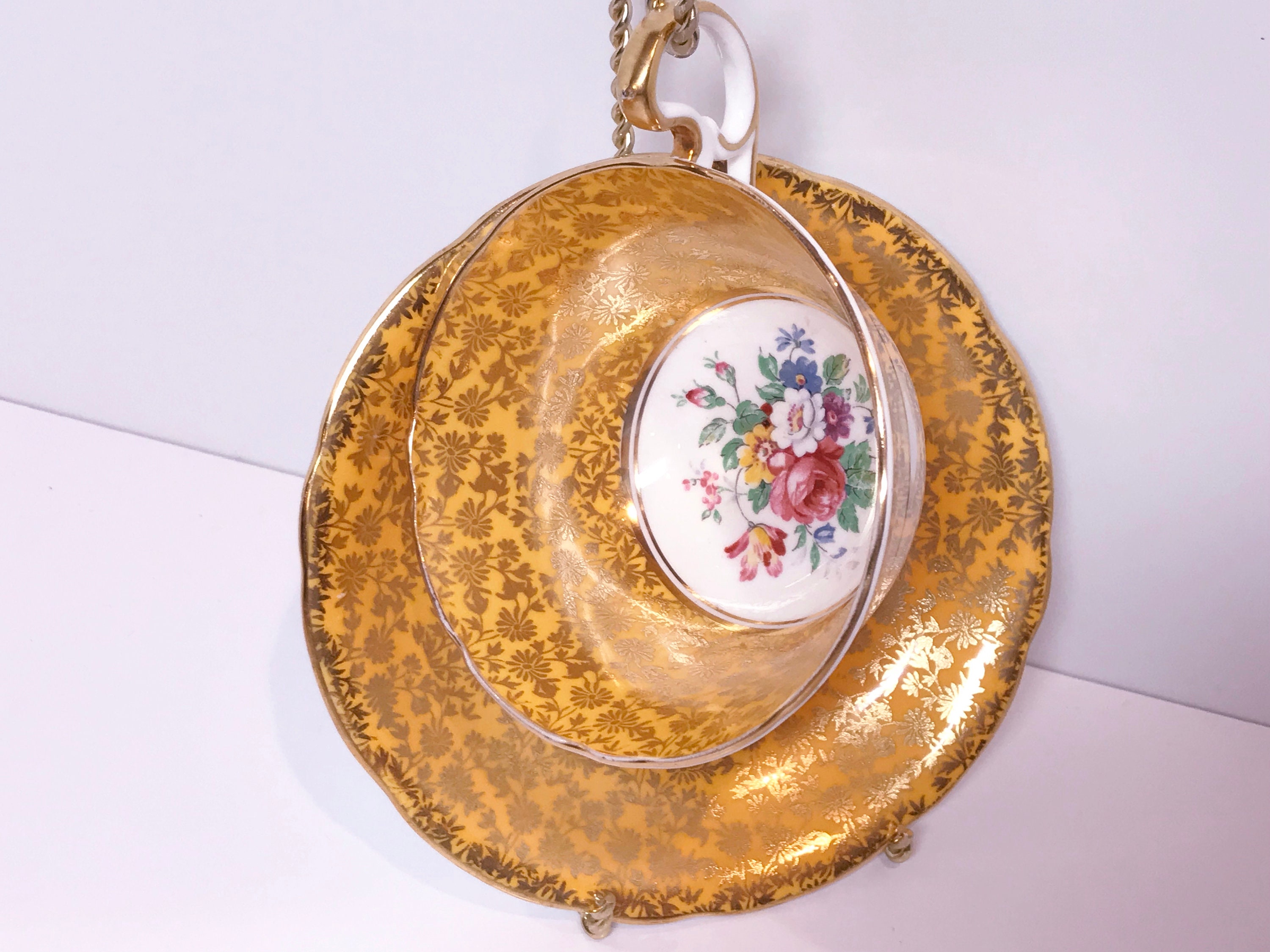 This resplendent tea cup and saucer by Aynsley Fine Bone China of England enhances every afternoon tea.