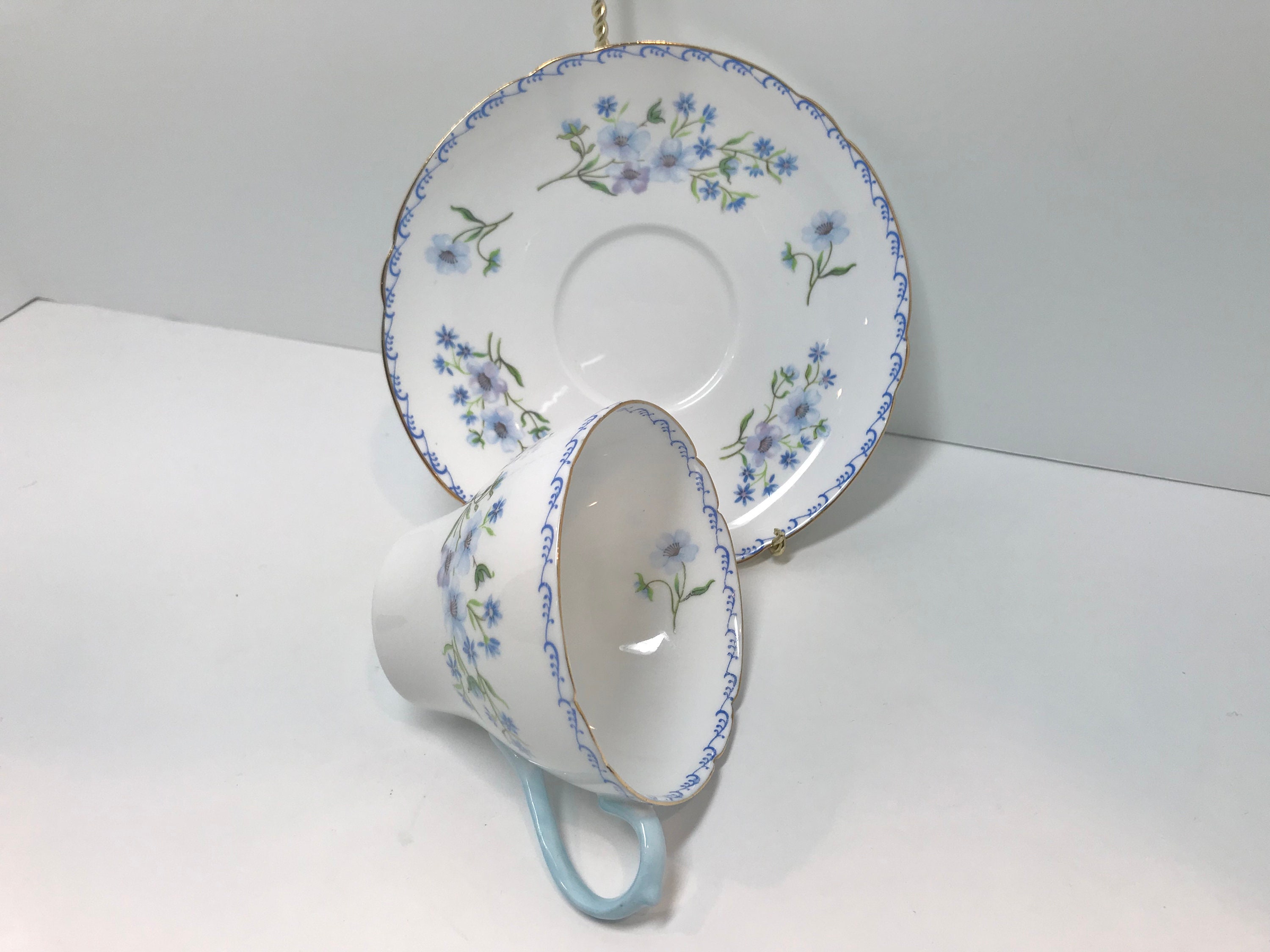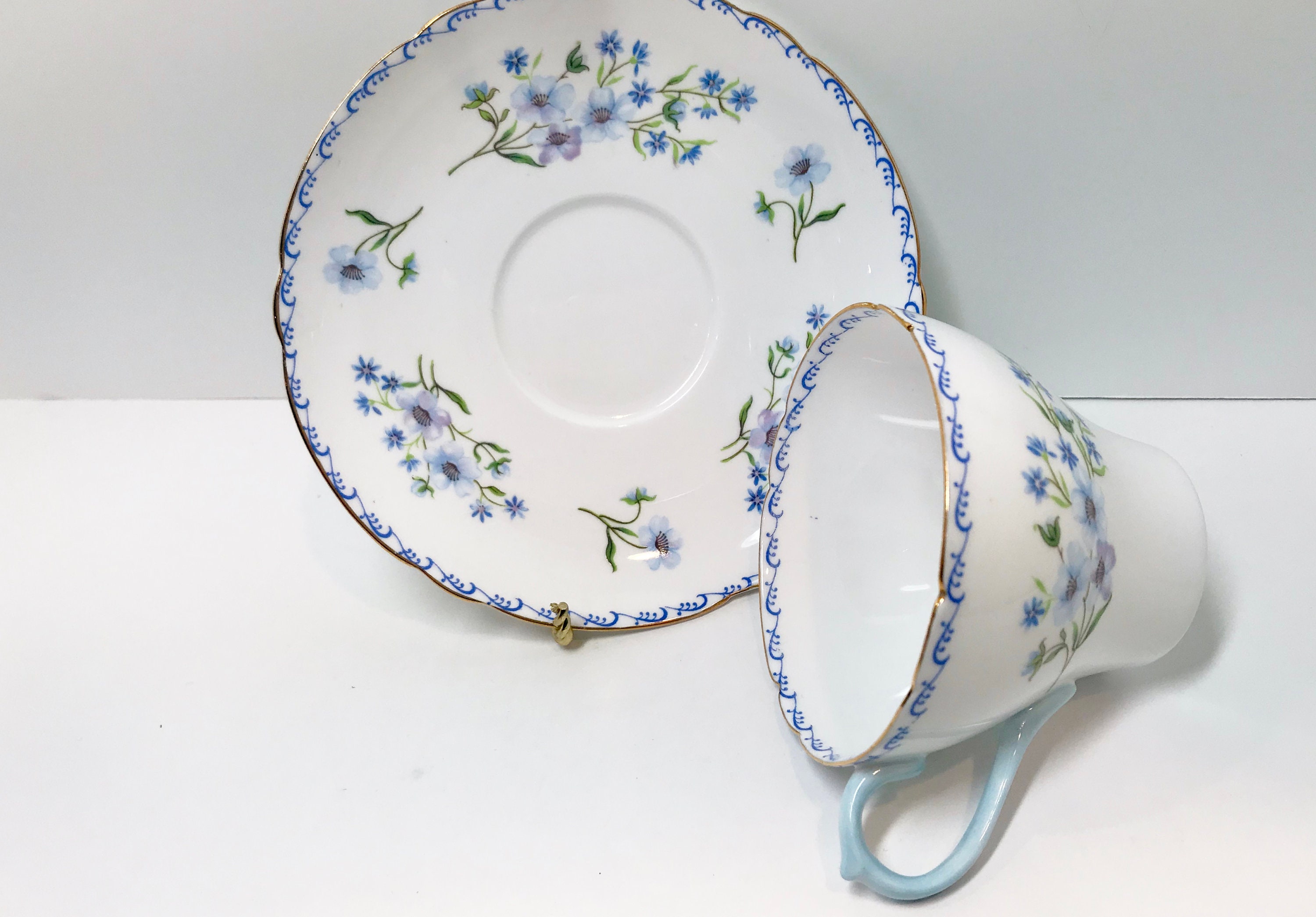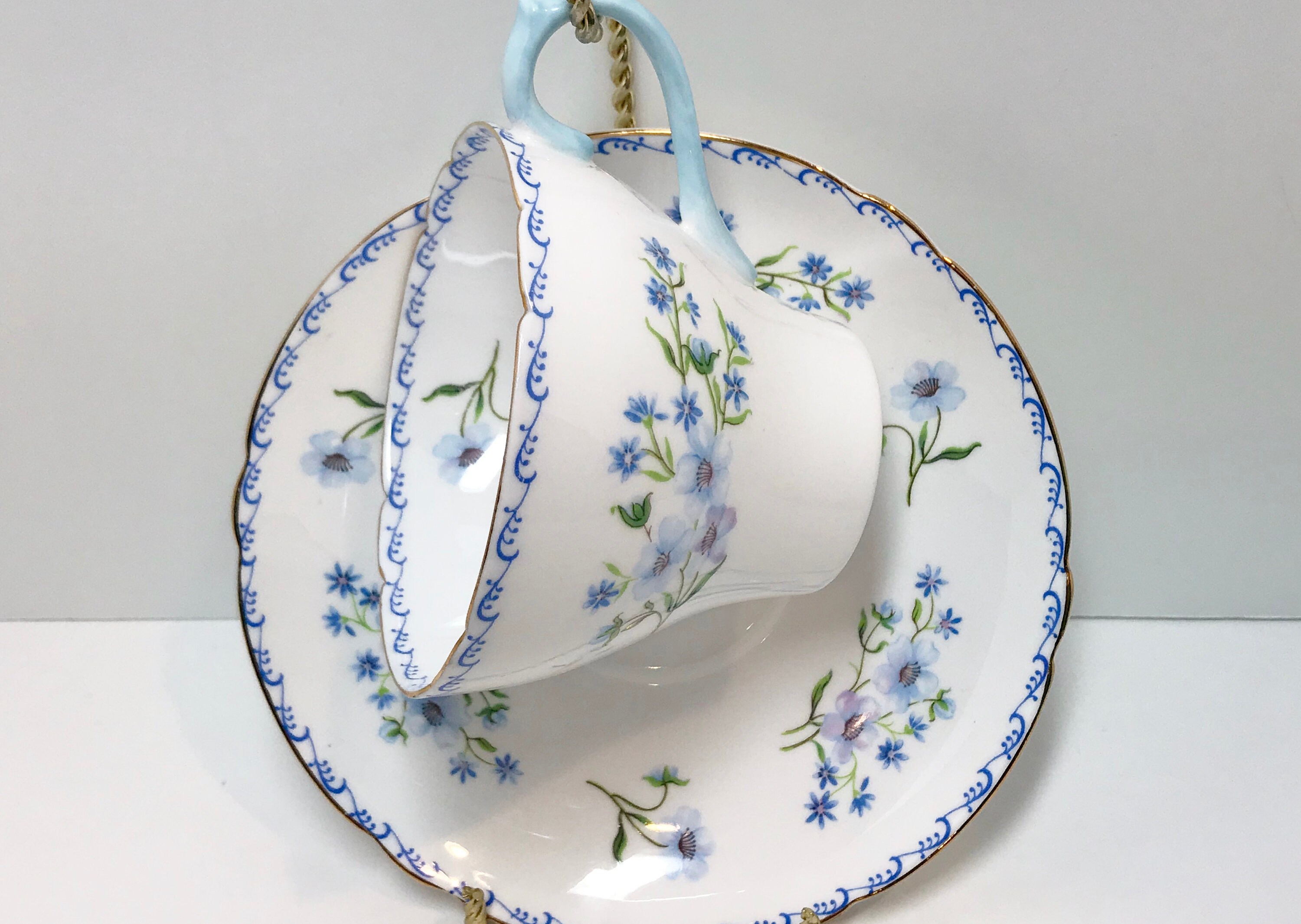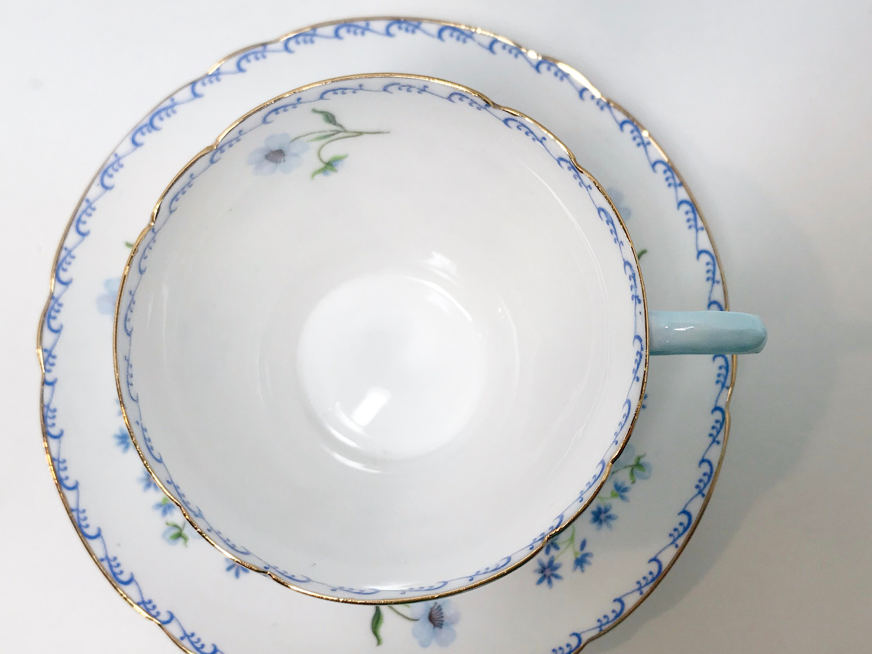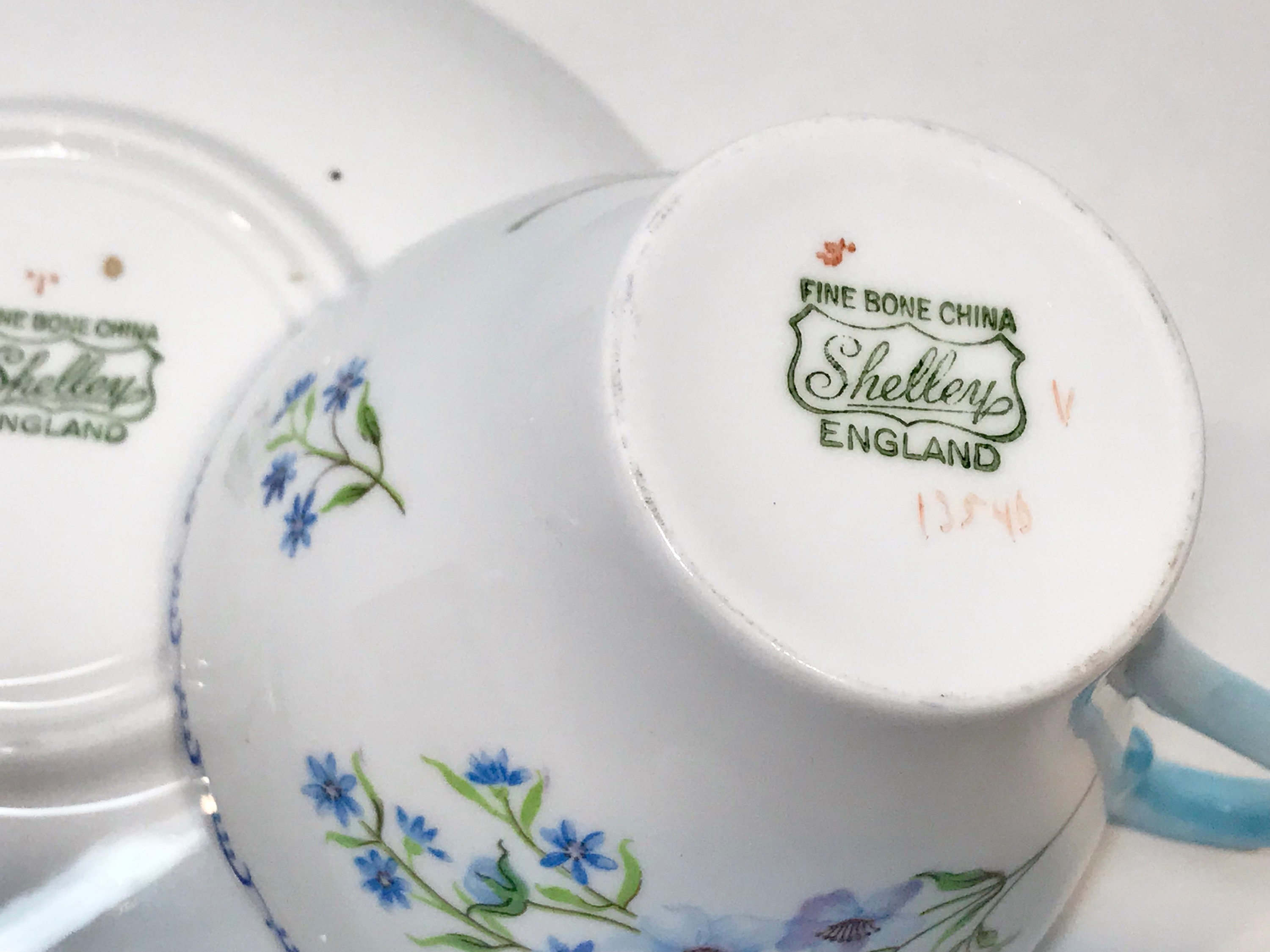 Shelley Fine Bone China of England created this charming antique tea cup in the Blue Rock pattern using their New Cambridge shape.