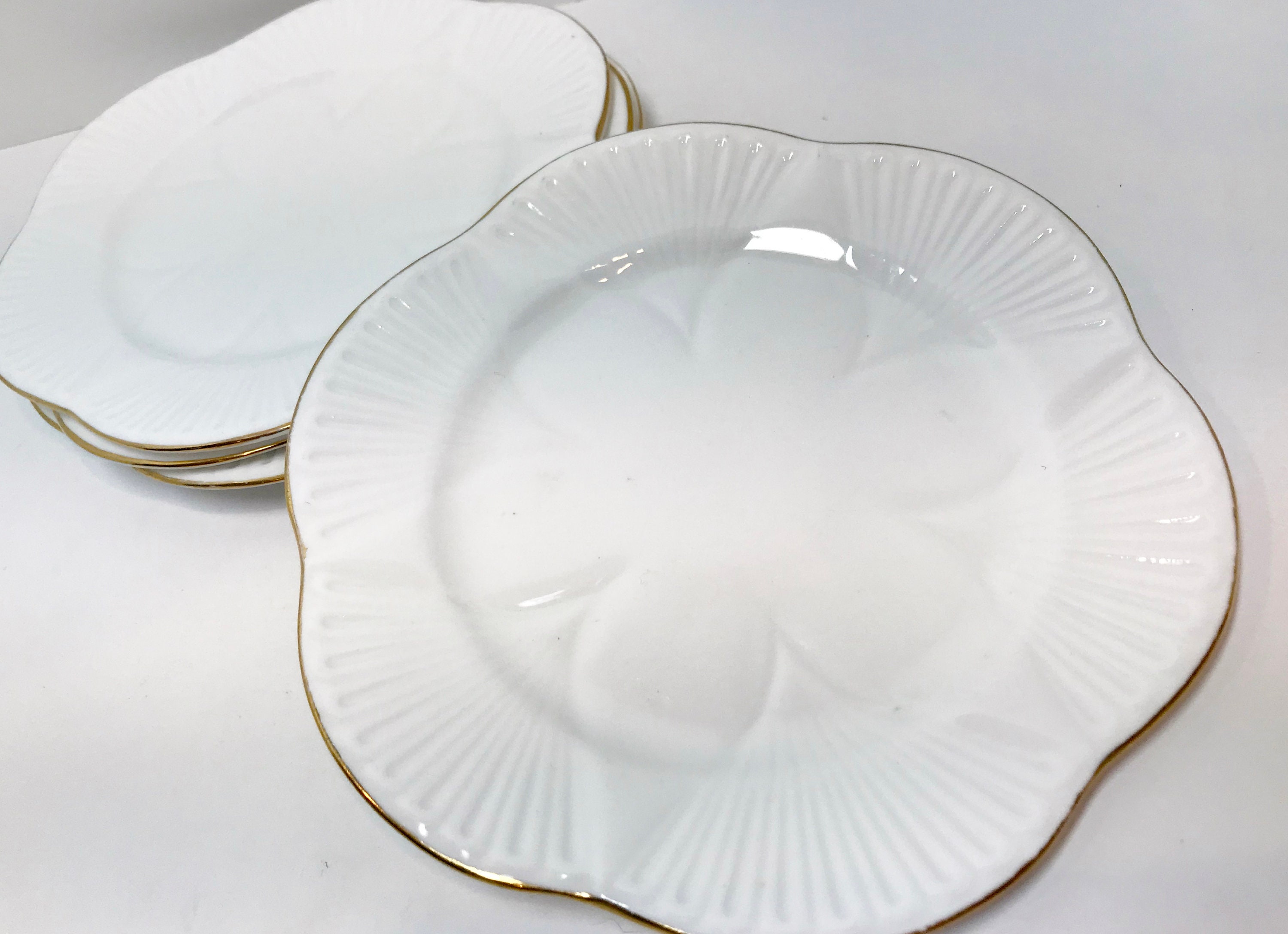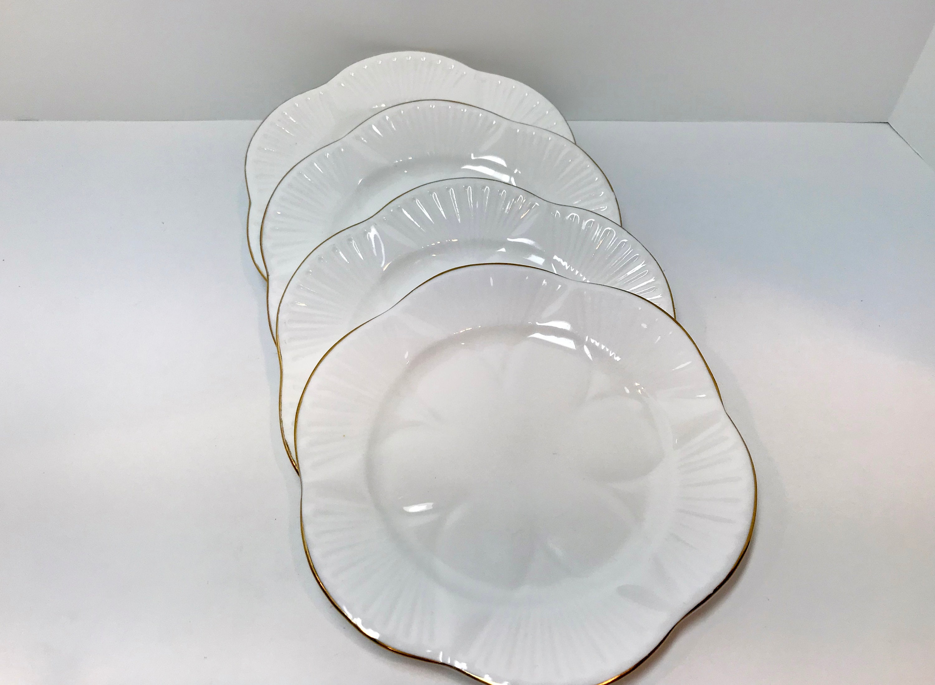 With the freshness of snow, white feels perfect on every table. Shelley china is reknown. These are stunning for a bridal dinner or on a colored cloth during holidays.