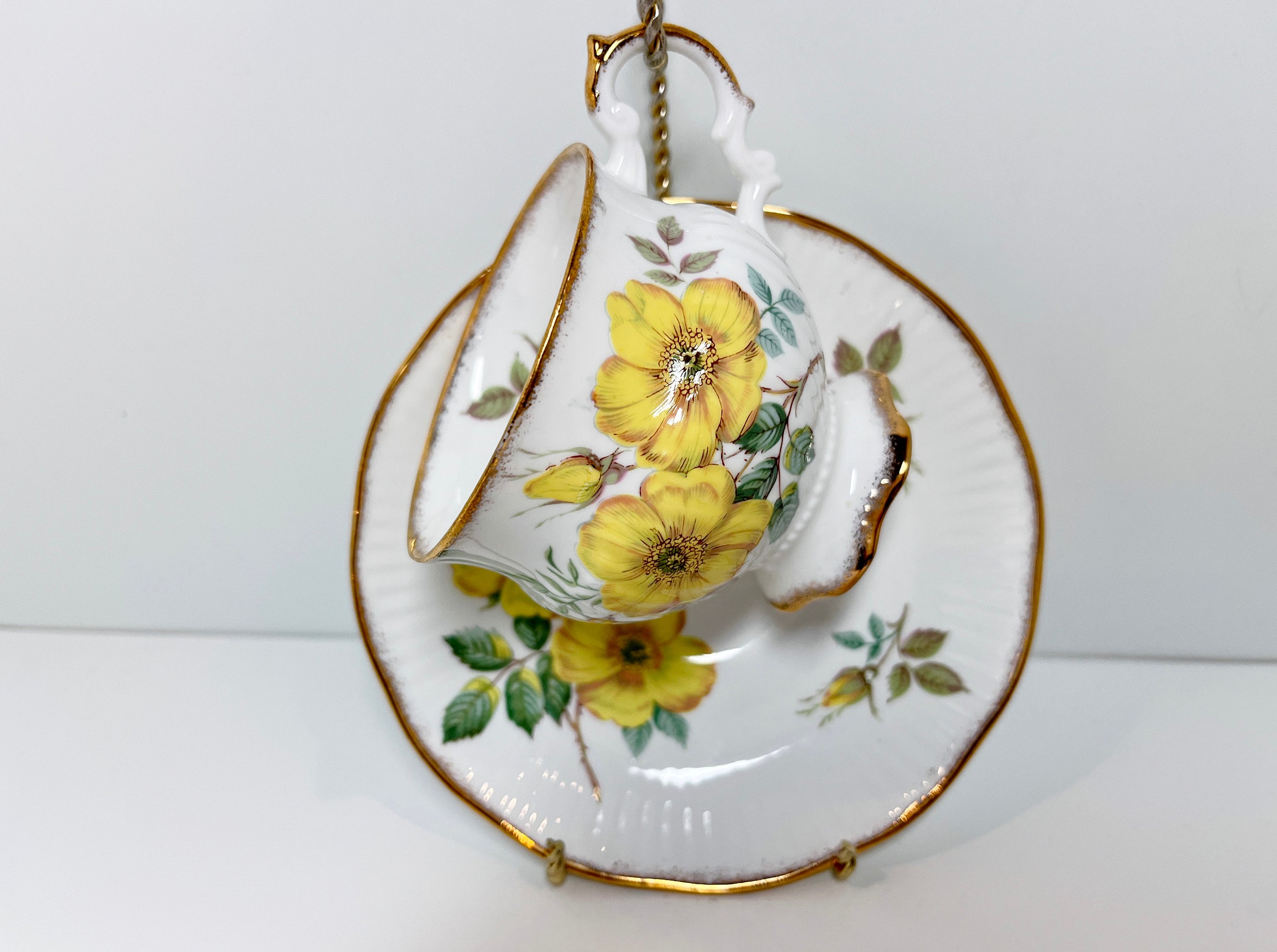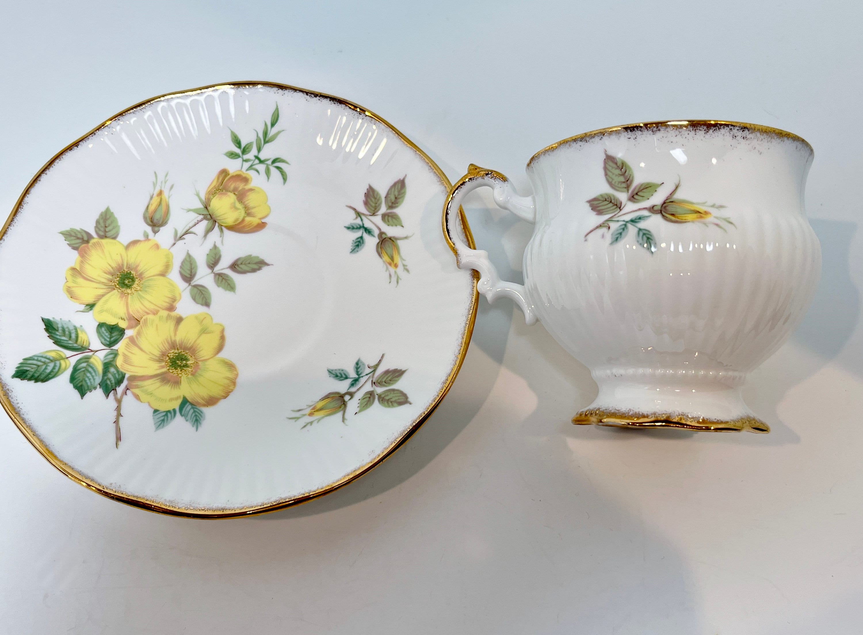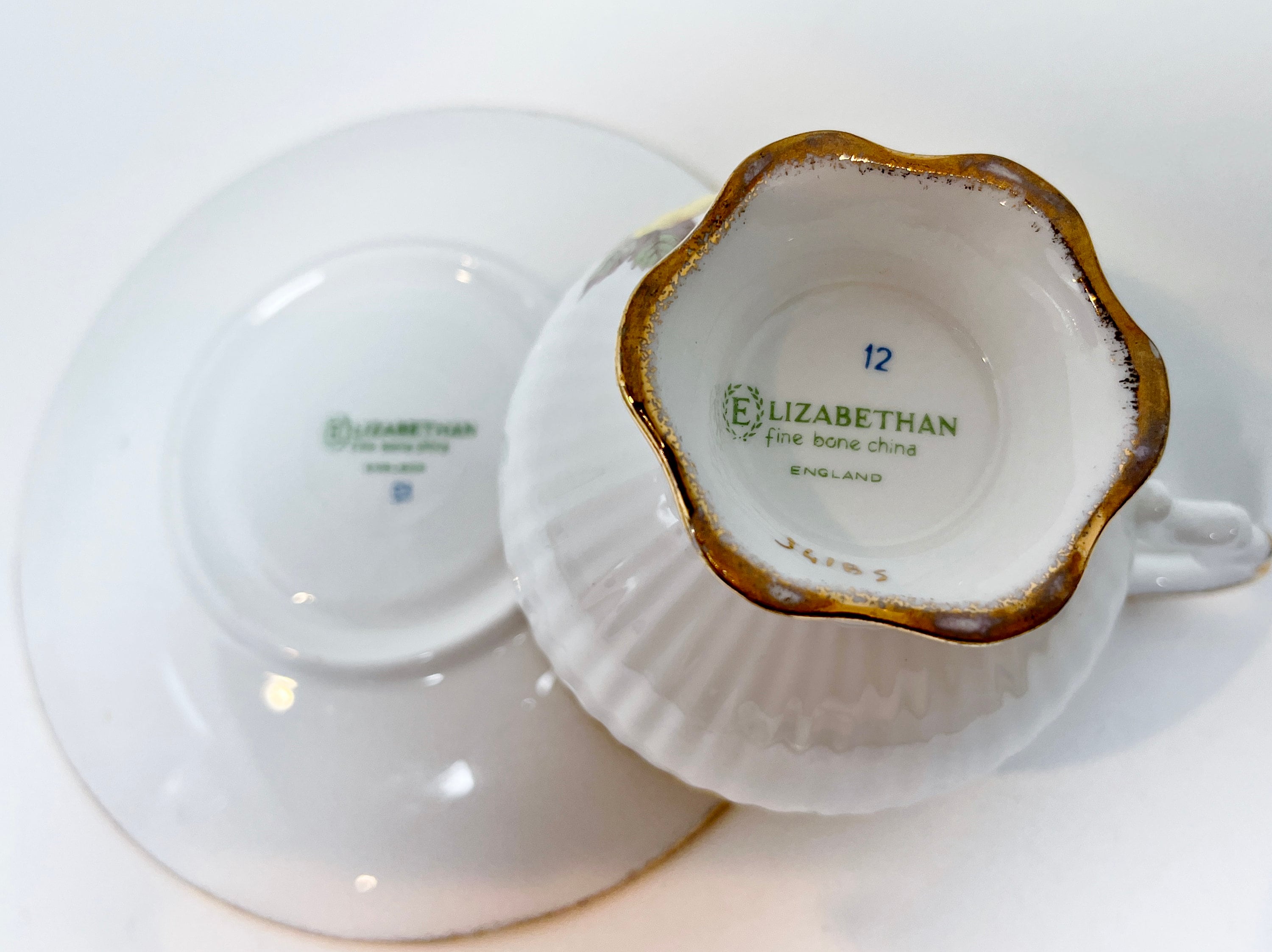Elizabethan Bone China of England crafted this beautiful, pedestal teacup and saucer.