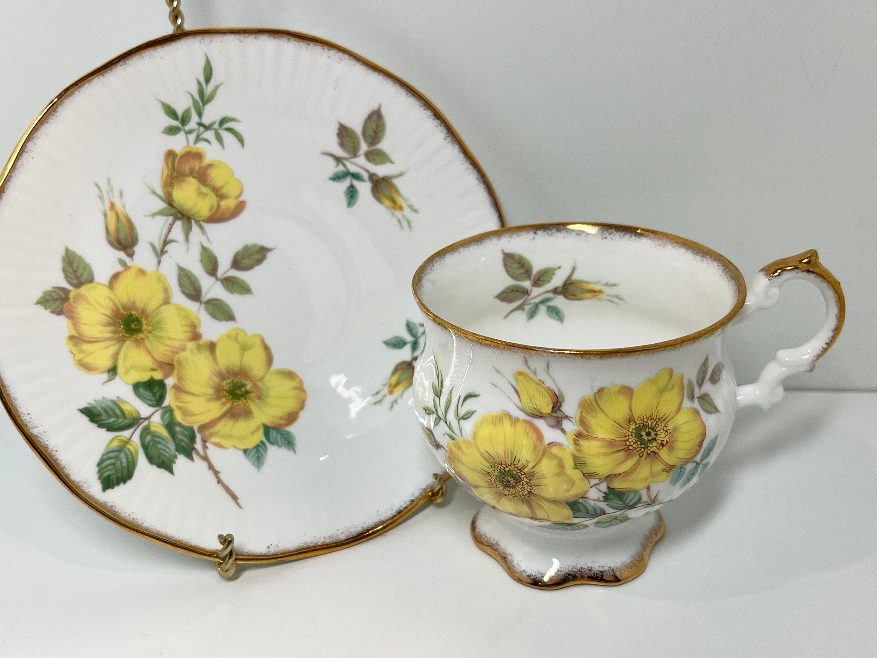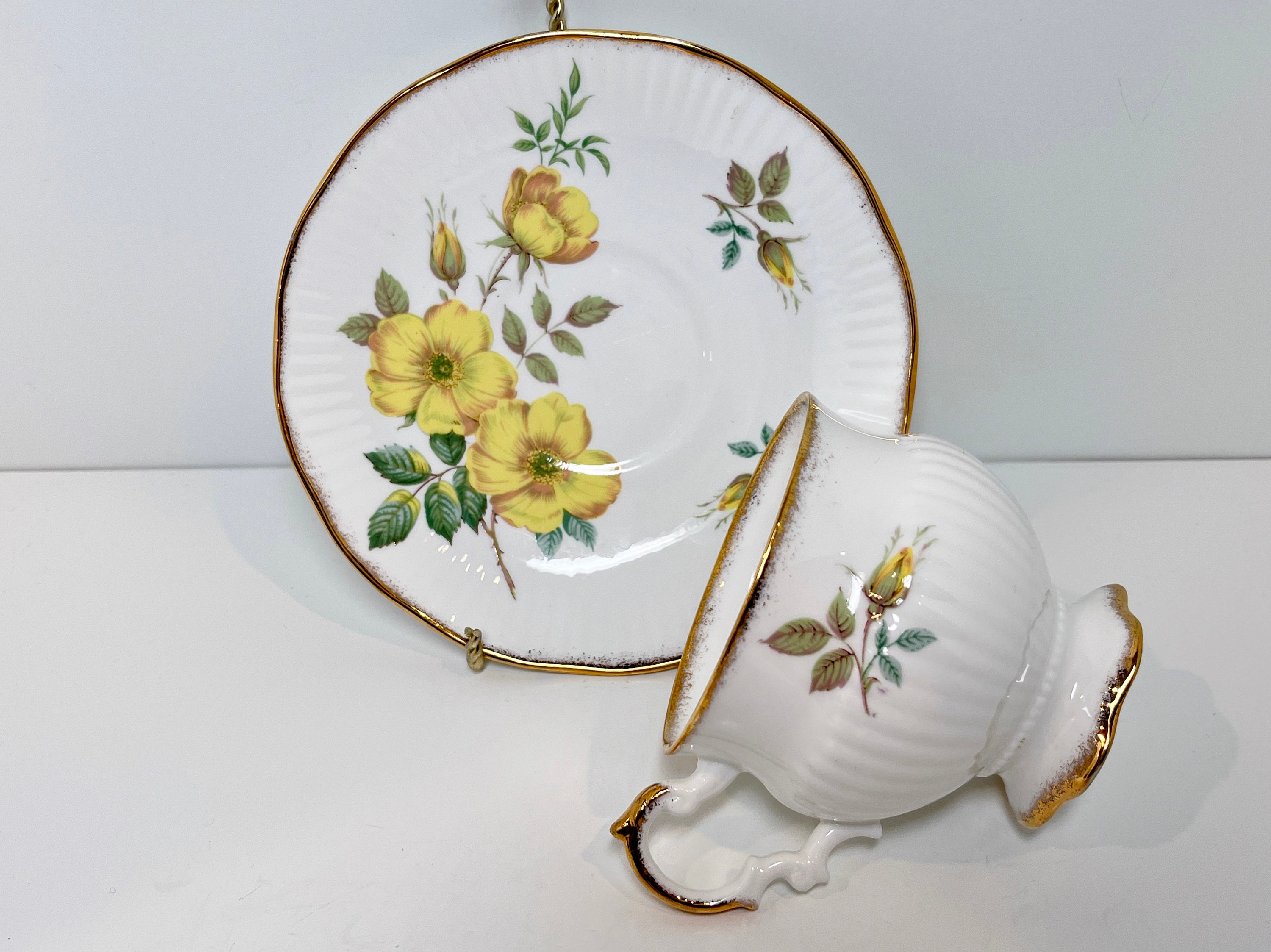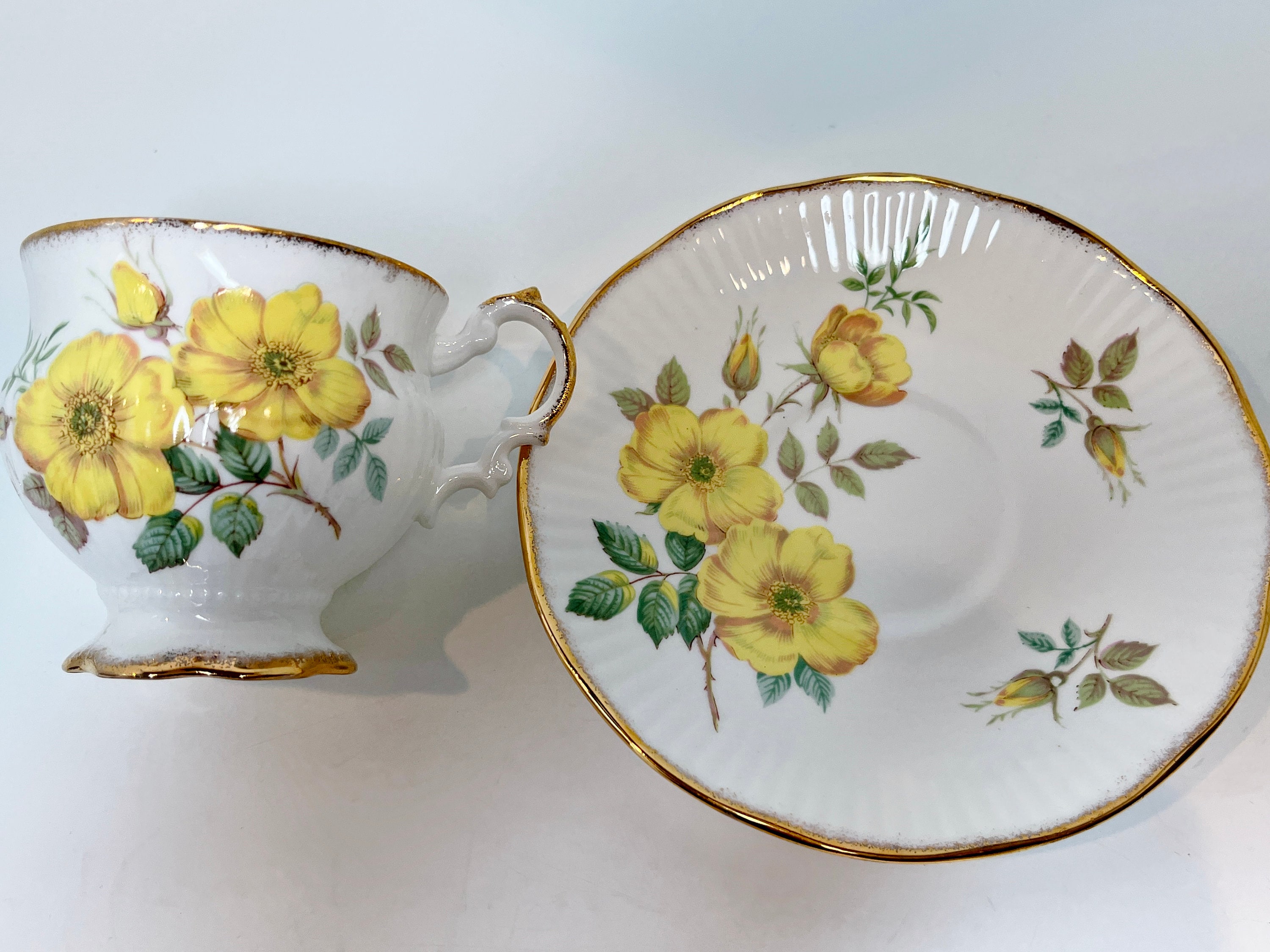 Elizabethan Bone China of England crafted this beautiful, pedestal teacup and saucer.