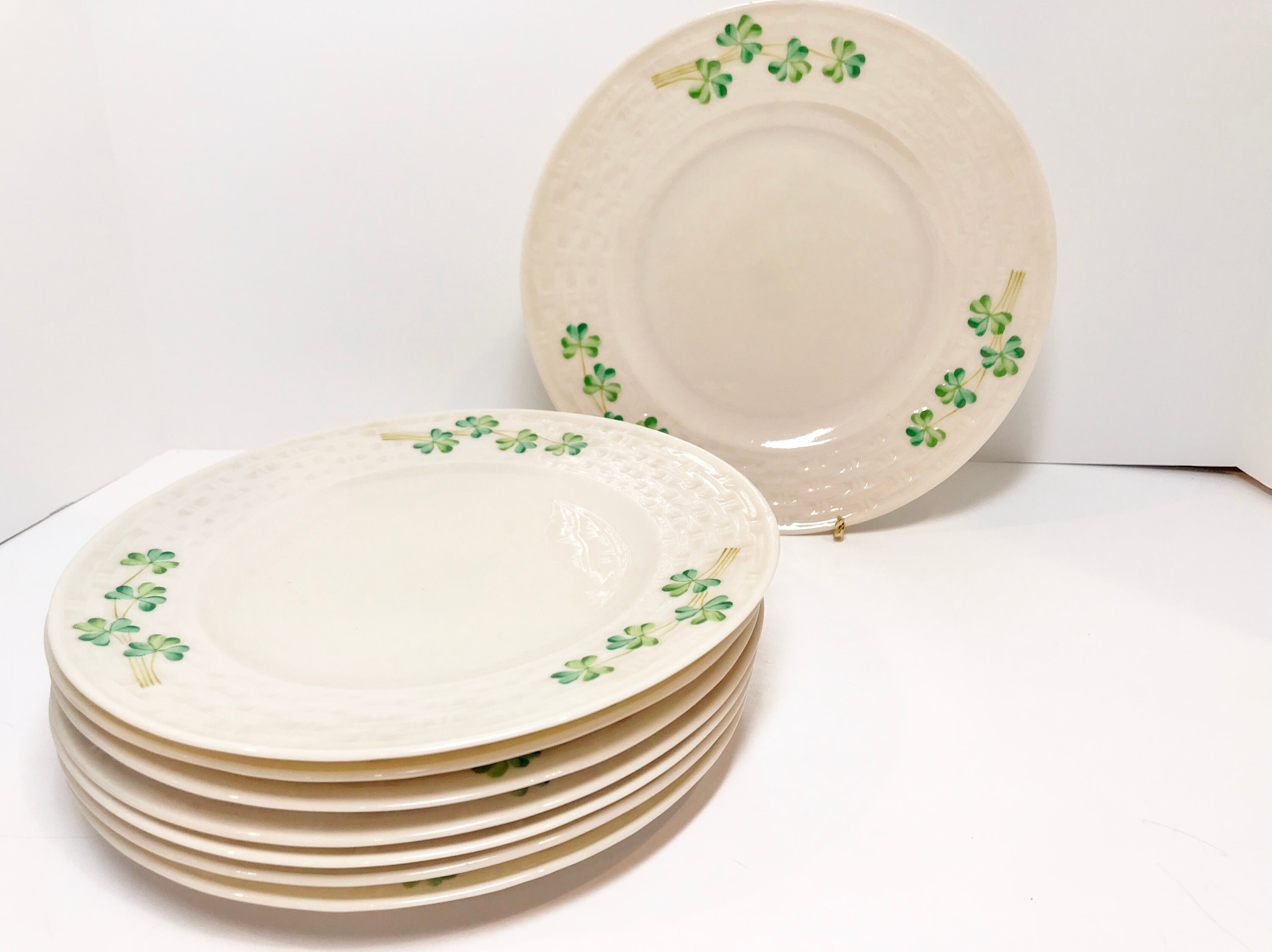 Black Mark Belleek Shamrock Plates, Shamrock Ware Plates, Belleek Plates, Belleek China, Belleek Porcelain, Set of Eight Belleek Plates