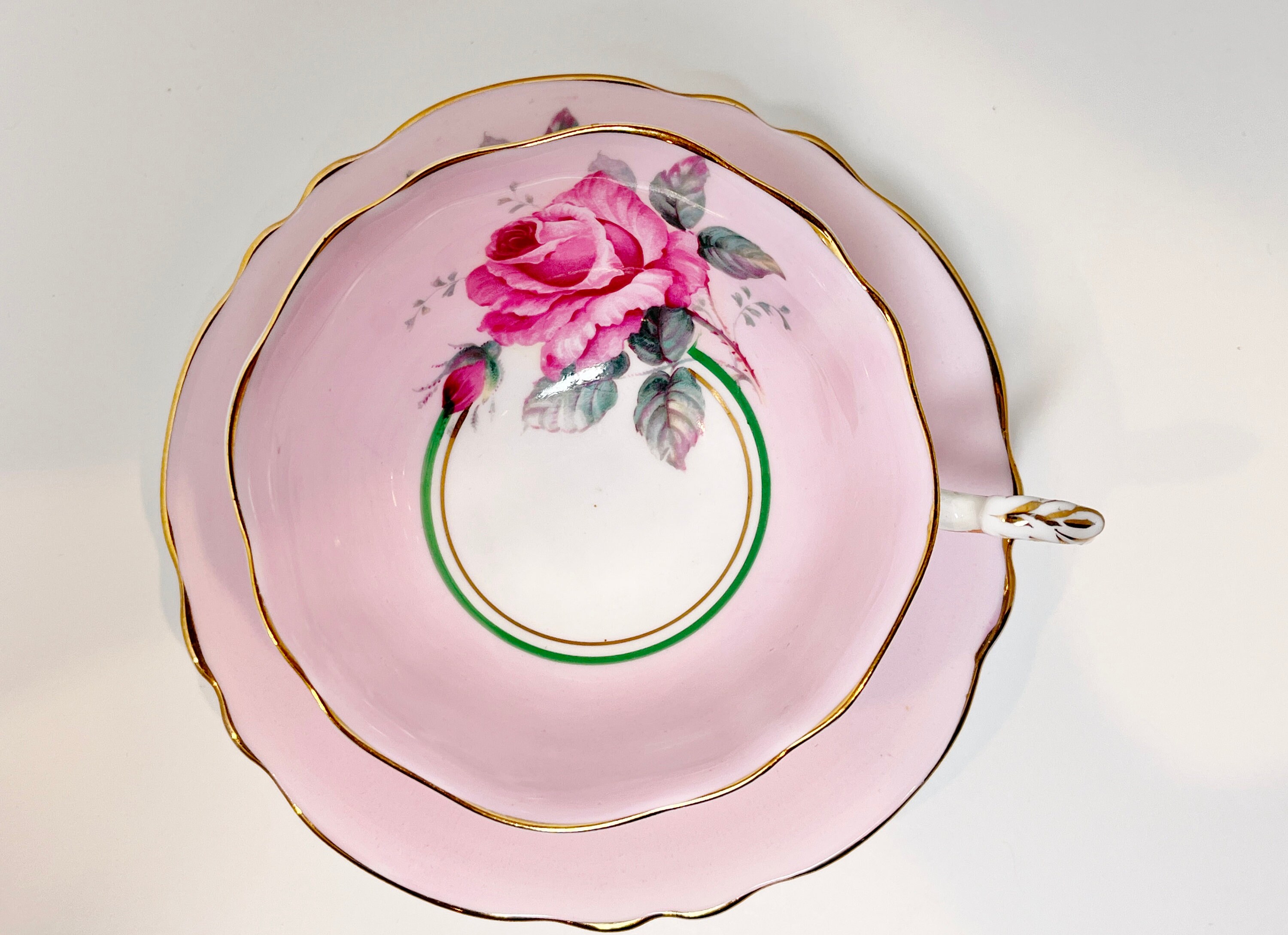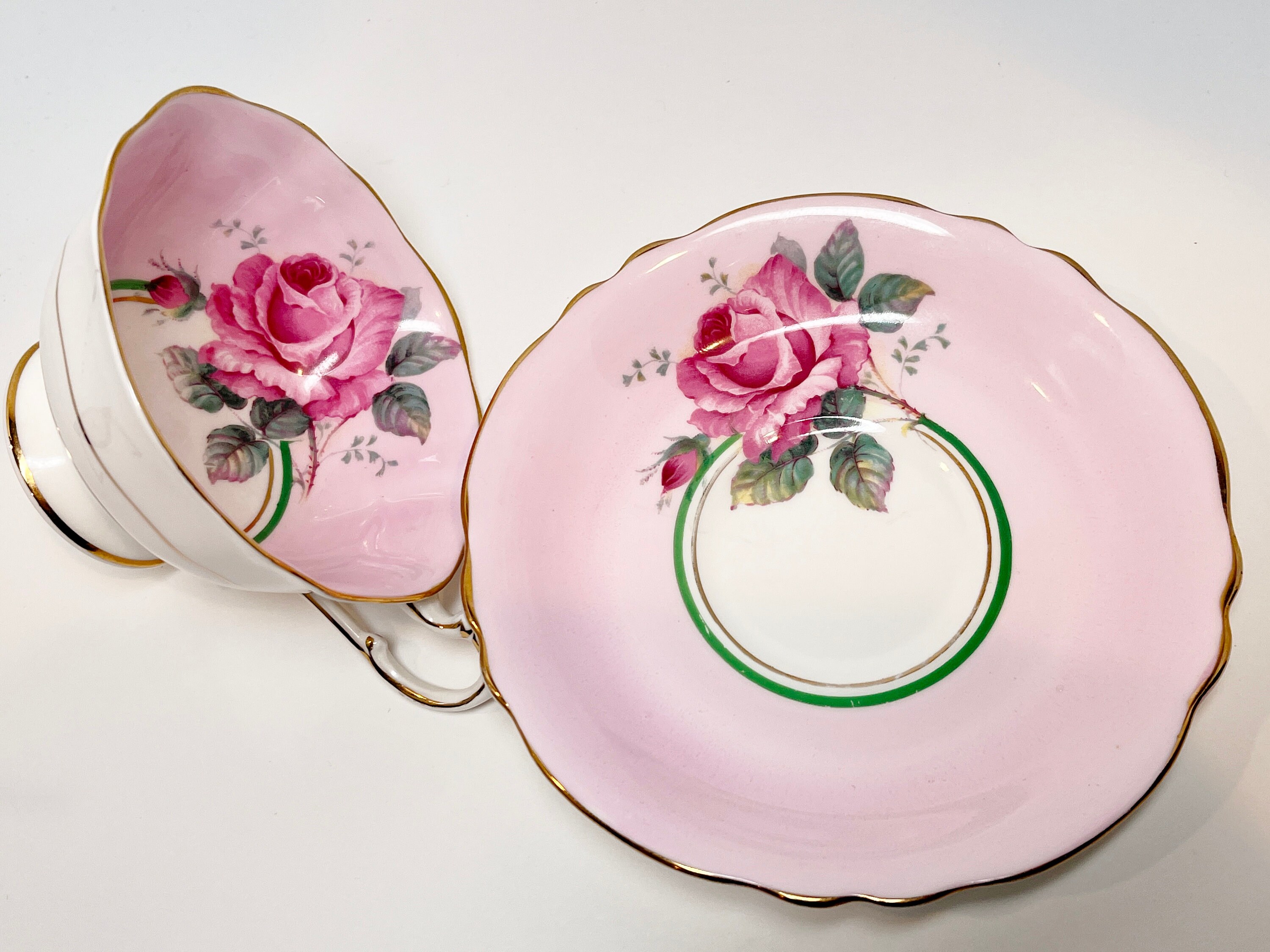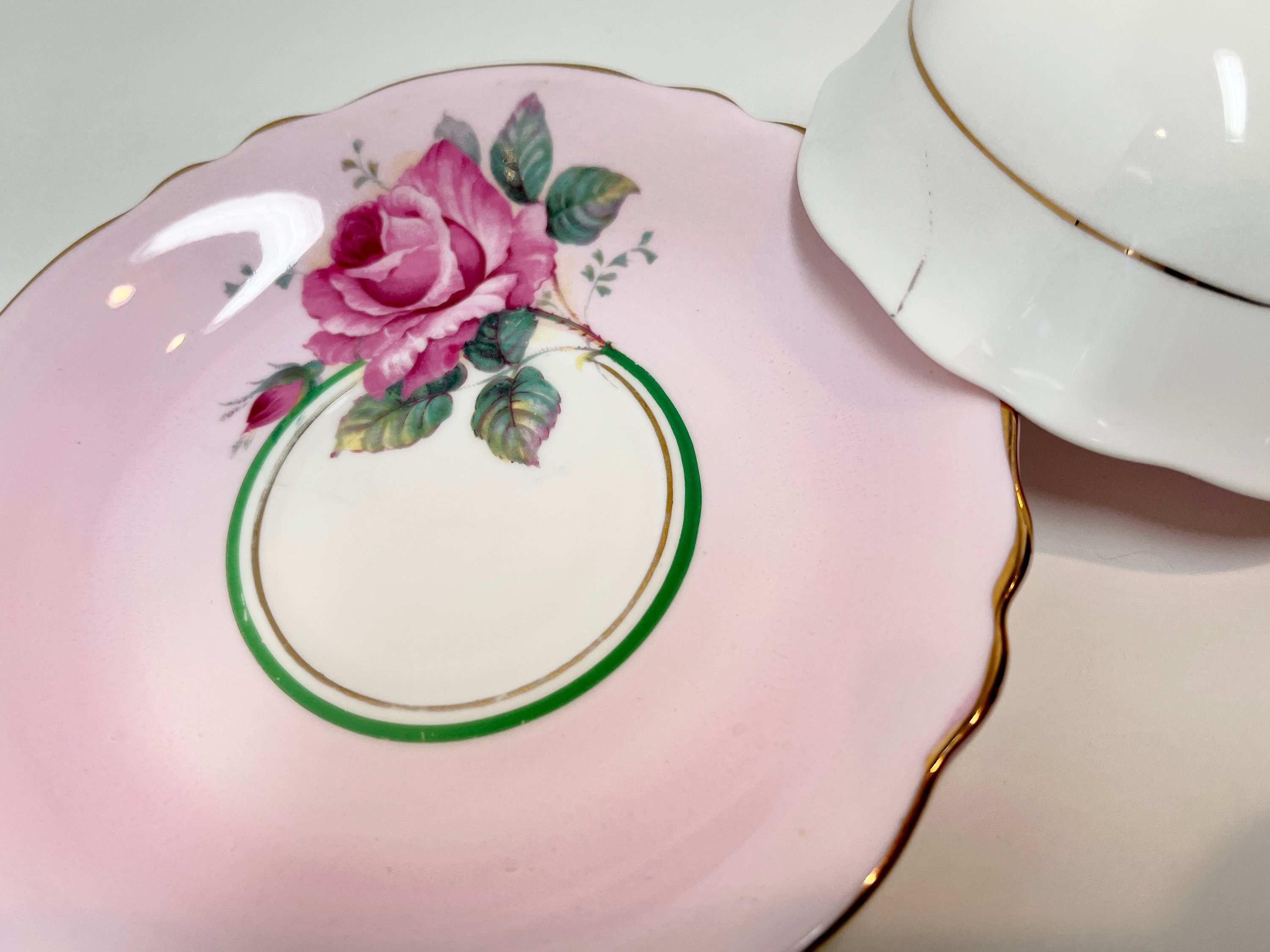 Paragon Fine Bone China of England with its double royal warrants from Queen Elizabeth and Queen Mary features a gorgeous pink rose.