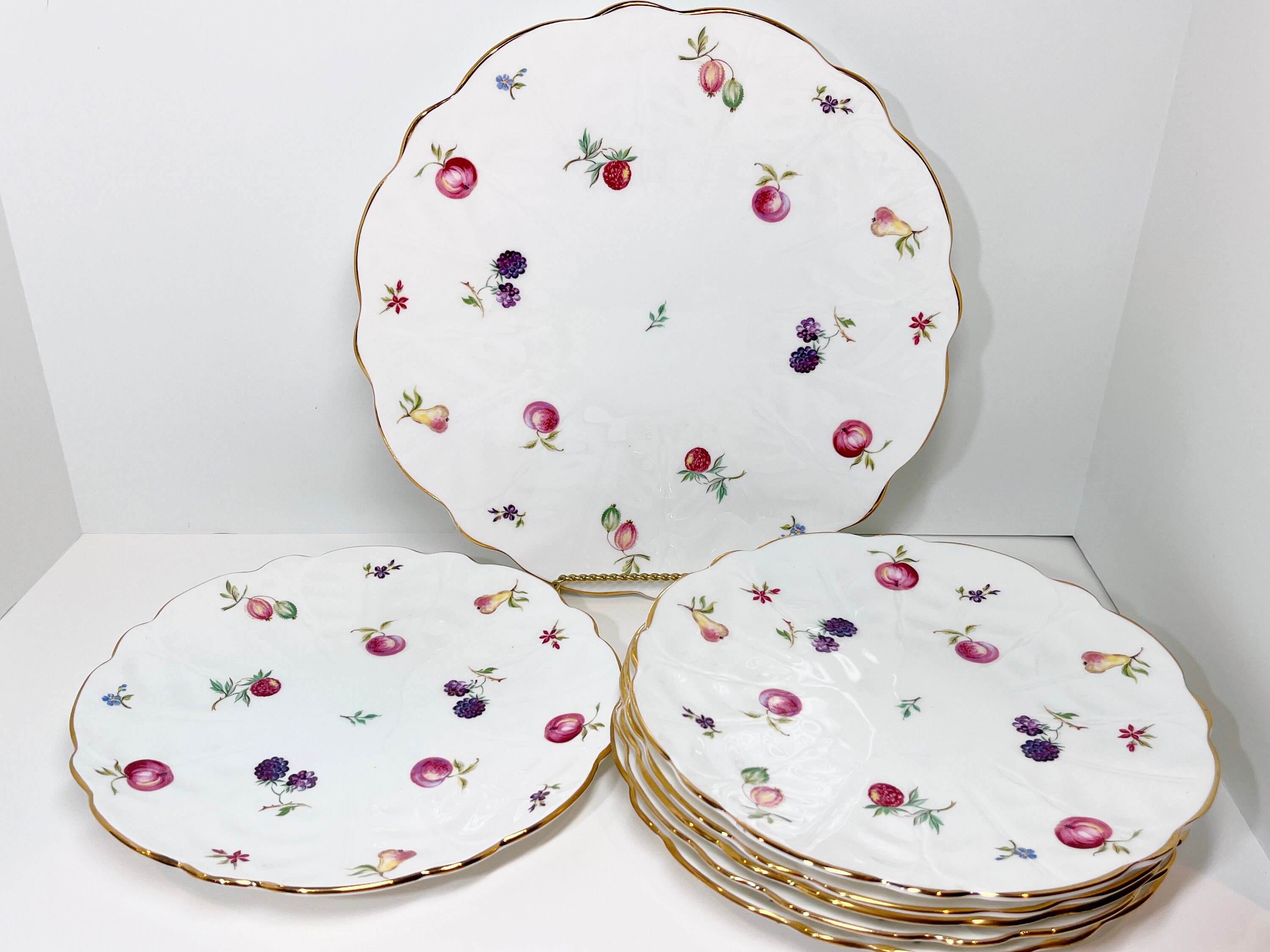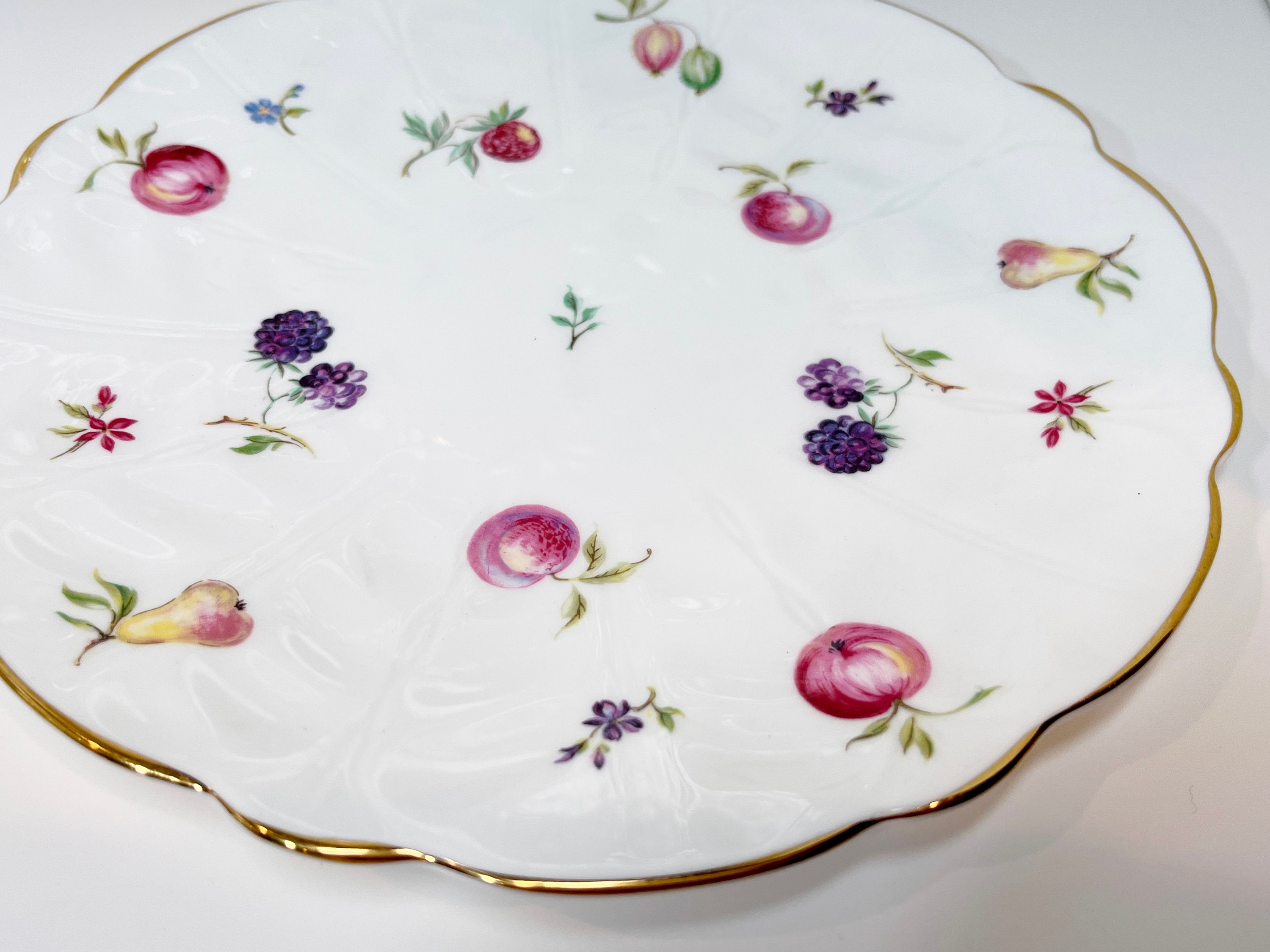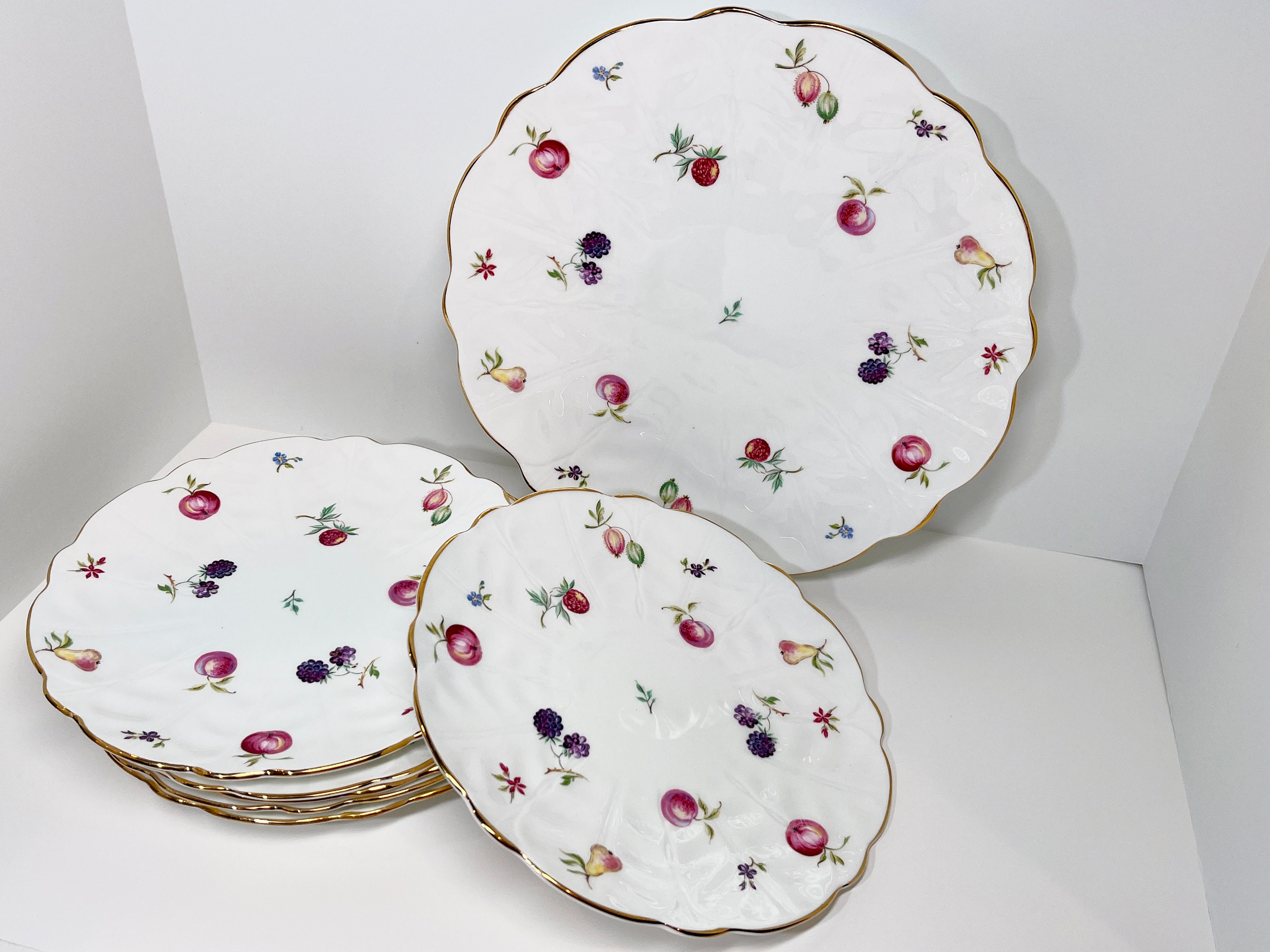 Aynsley produced this Florida Pattern set. It consists of soft scallops in the design and fruit that is often grown in Florida. There is a cake plate and six dessert plates.