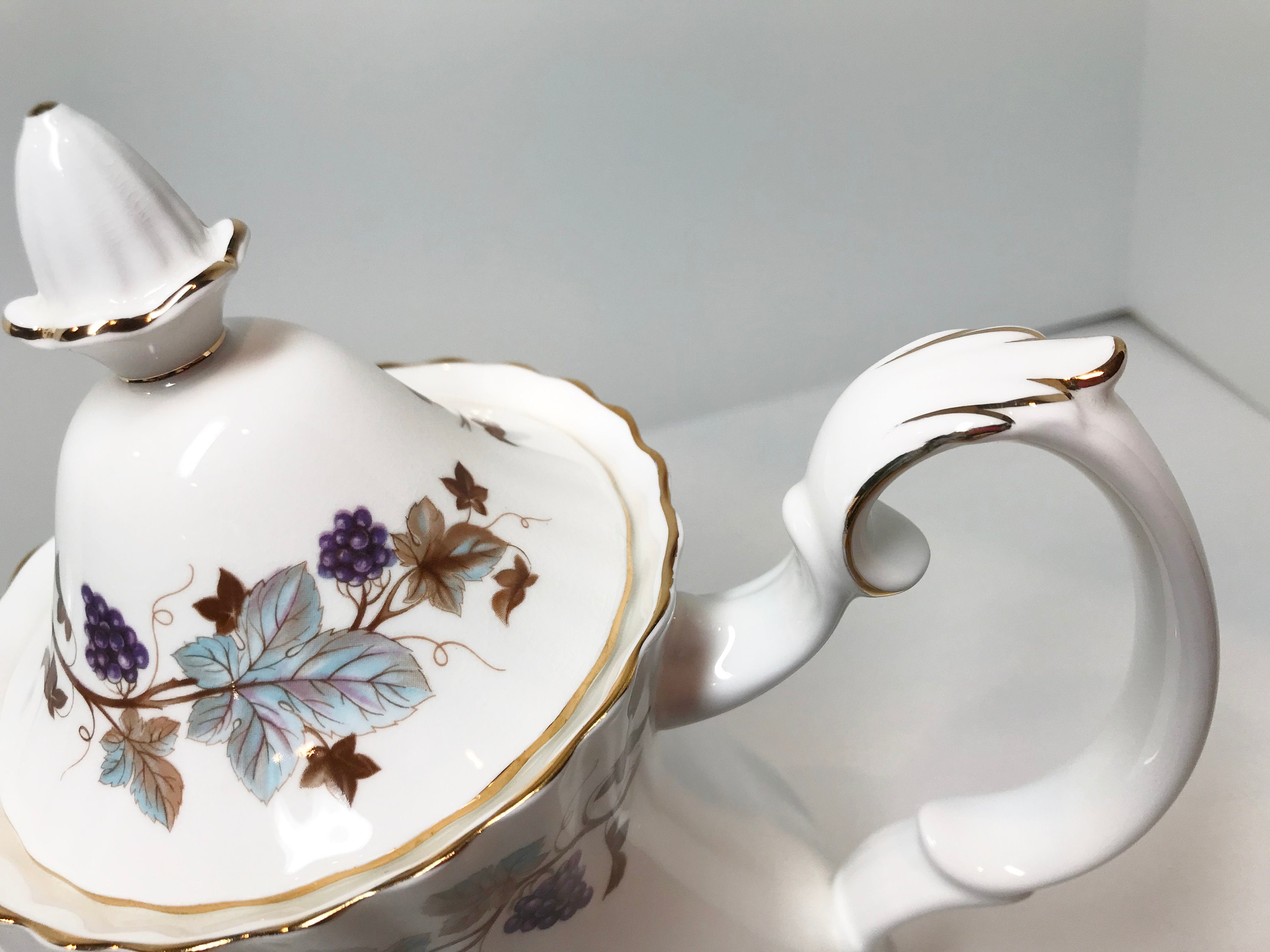 Royal Albert Bone China of England crafted this elegant teapot. Royal Albert was the upscale division of the Thomas C Wild and Sons company located in St. Mary's Works, Longton, England. They produced lovely bone china beginning in 1917.