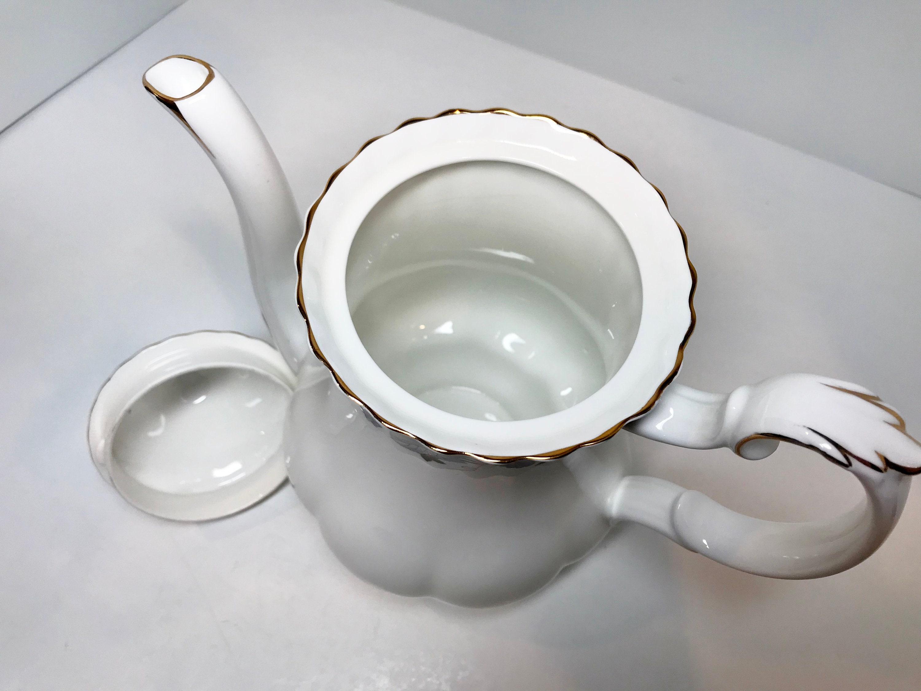 This elegant tea pot is in excellent condition. There are no cracks, chips or crazing. In fact, it was purchased, placed on a shelf and never used. We do not sell damaged items. You may buy with confidence.