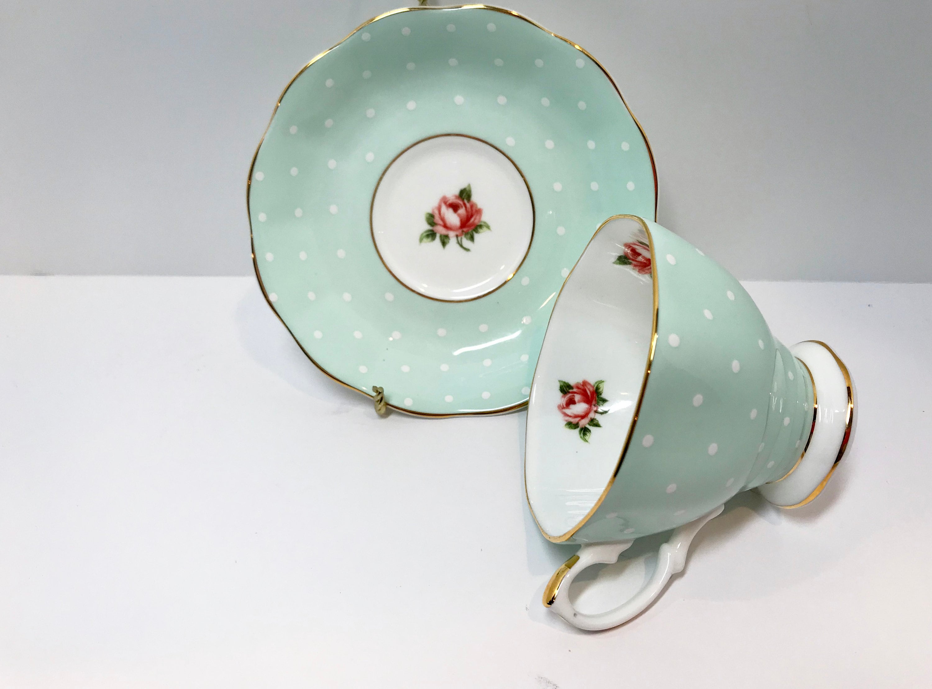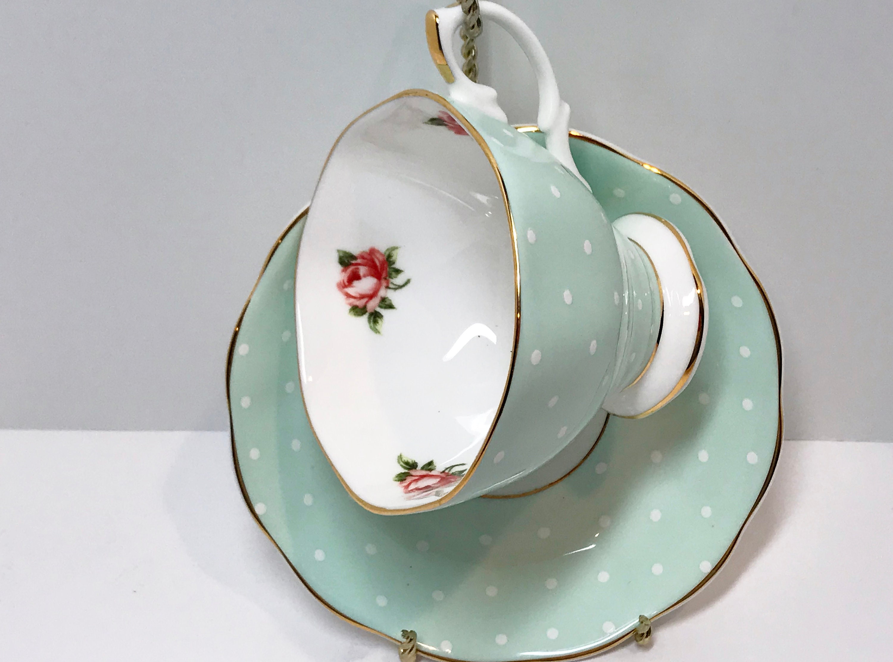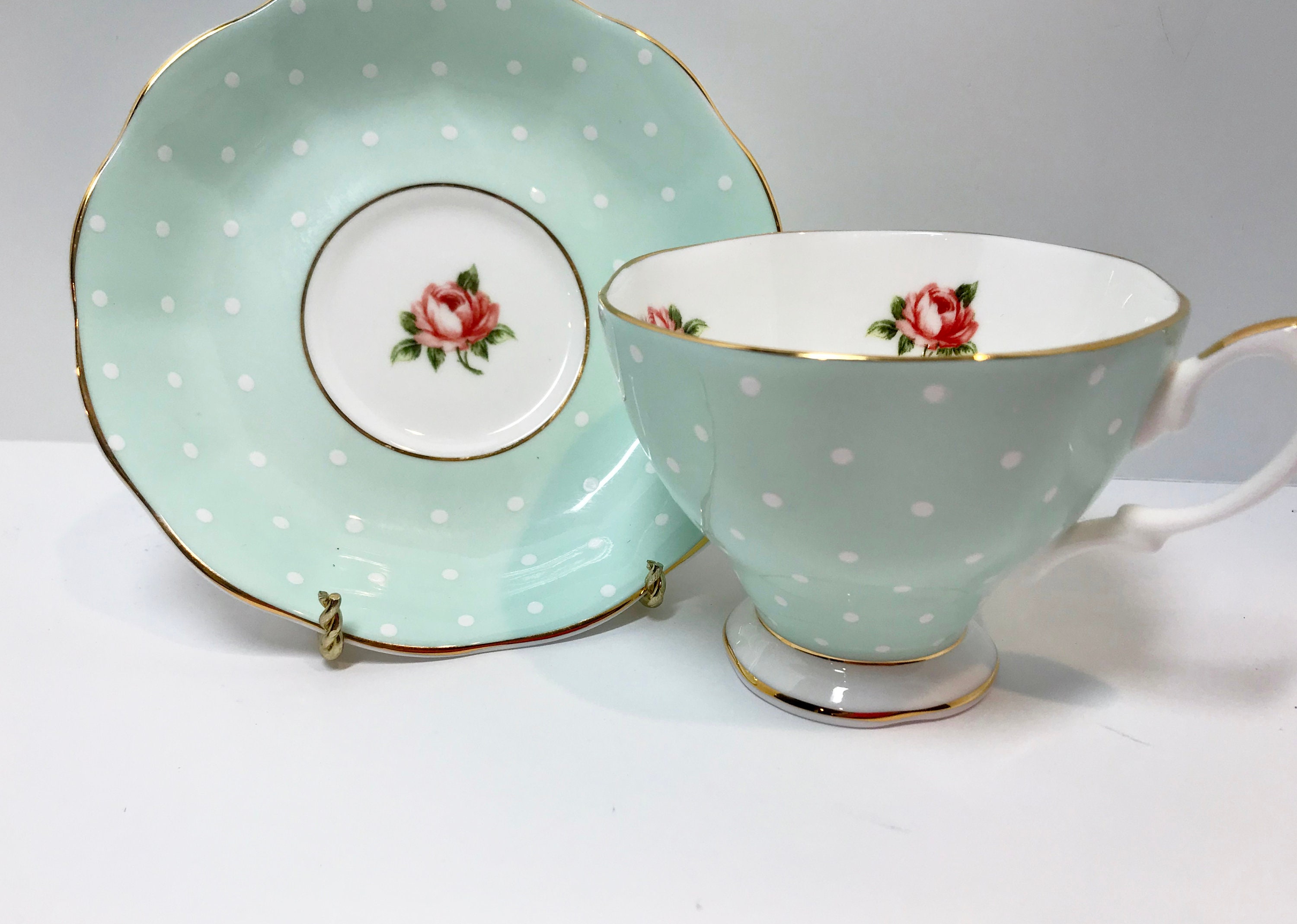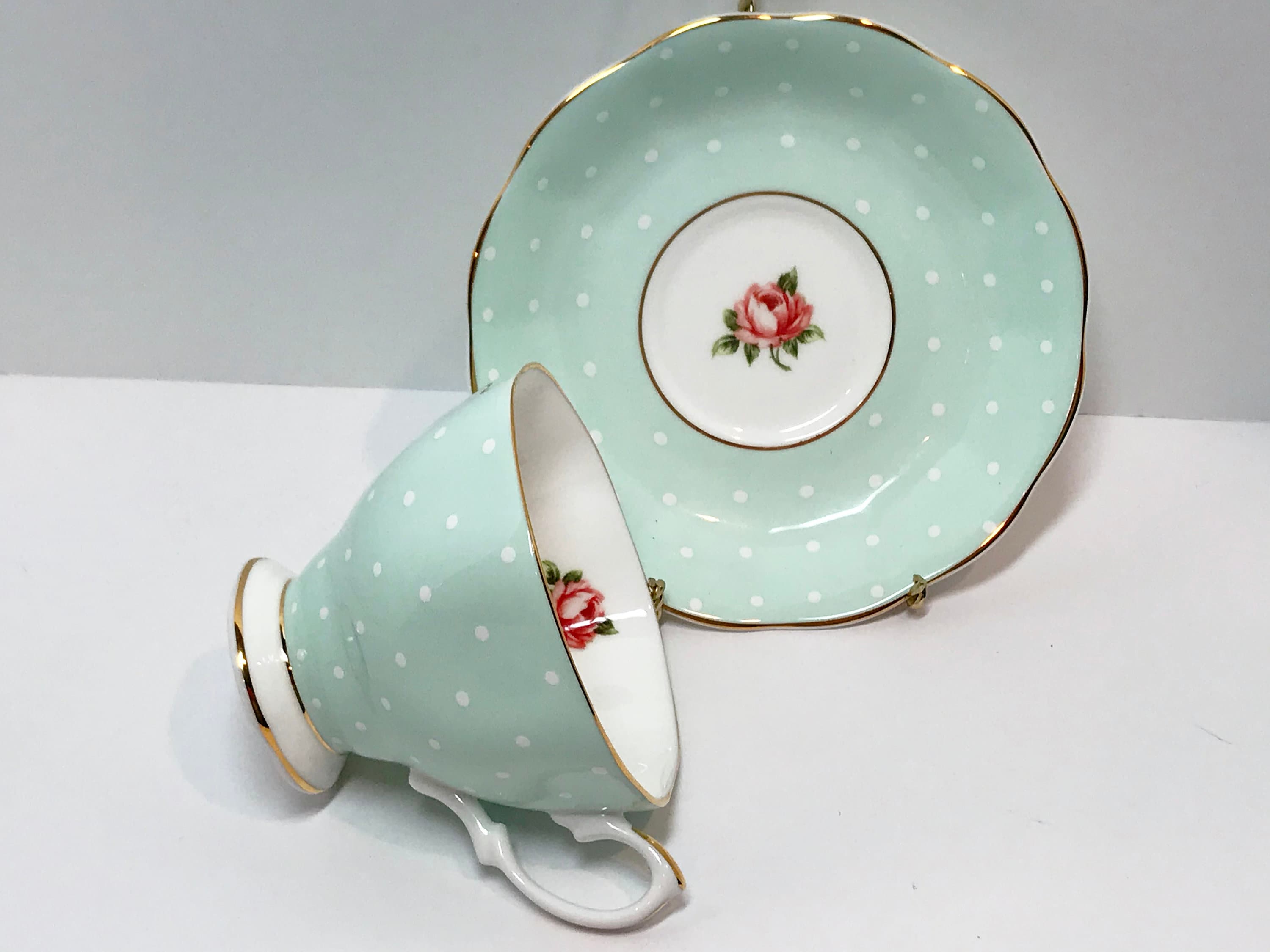 Royal Albert Teacup and Saucer, Polka Rose Pattern, Polka Dot Tea Cups, Antique Tea Cups Vintage, English Bone China Cups