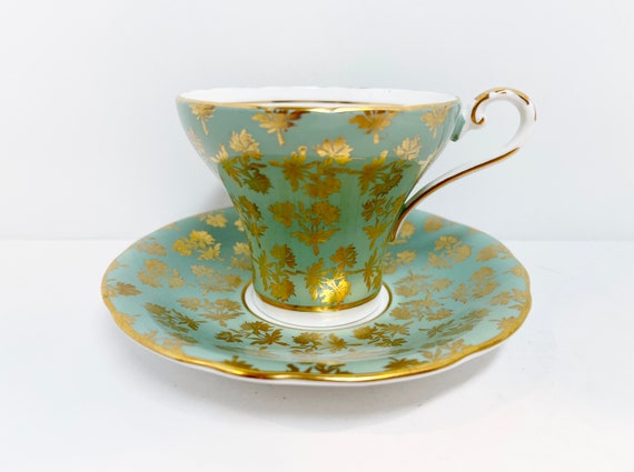 Adderley Bone China Teacup: Gold Grapes, English Afternoon Tea
